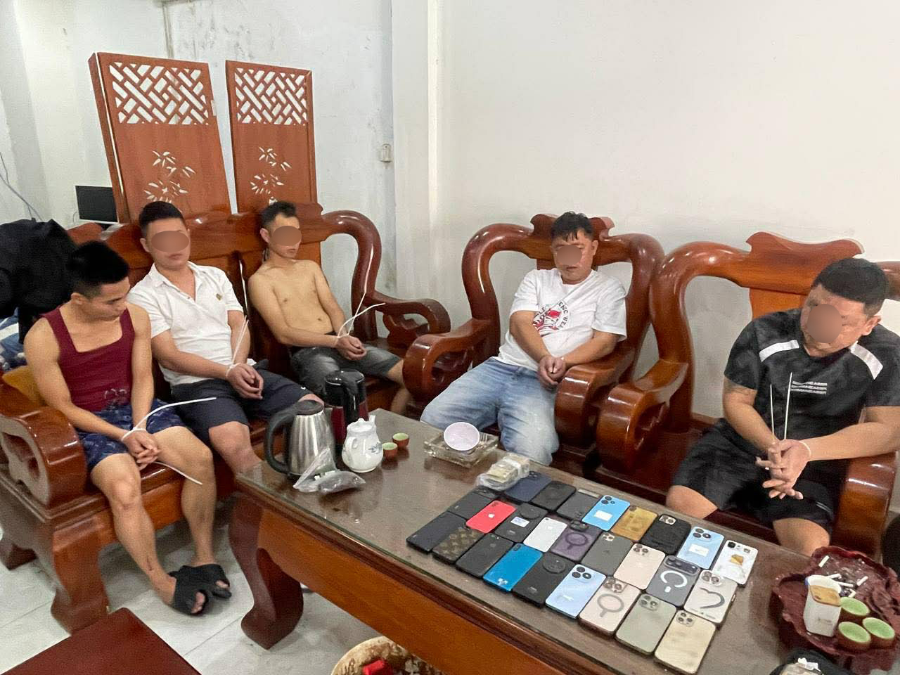 ជាមួយគ្នានេះ សមត្ថកិច្ចបានរឹបអូសសម្ភារៈជាវត្ថុតាងរួមមាន កុំព្យូទ័រលើតុ៤៧គ្រឿង, ទូរសព្ទដៃ ២៥រឿង, ដុំ Mobile Tri Band Repeater ០១, ដុំ WiFi ចំនួន០៤គ្រឿង, កាត០១សន្លឹក, រថយន្ត ០១គ្រឿង ម៉ាក Lexus RX400h ពណ៌.ស ផ្លាកលេខ ភ្នំពេញ 2BZ-4107, ម៉ូតូ០៤គ្រឿង, ឯកសណ្ឋានសមត្ថកិច្ច, លិខិតឆ្លងដែន១២ក្បាល, អត្តសញ្ញាណបណ្ណ២៤សន្លឹក, បណ្ណបើកបរ៥សន្លឹក និងផ្លាកលេខម៉ូតូវៀតណាម ០១សន្លឹក។