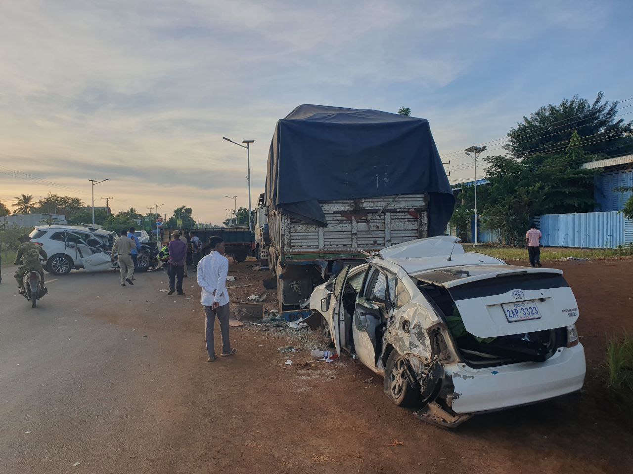 តាមប្រភពព័ត៍មានពីសមត្ថកិច្ចបានឲ្យដឹងថា មុនពេលកើតហេតុ មានរថយន្តយីឌុបដឹកស្រូវមួយគ្រឿងបានចតដេកនៅអែបចិញ្ចើមផ្លូវខាងស្តាំ នៅចំណុចកើតហេតុខាងលើ ហើយក៏មានរថយន្តព្រូសមួយគ្រឿង ពណ៍ស បានធ្វើដំណើរពីជើងទៅត្បូង បានគេចពីគោយន្តកន្ត្រៃ ក៏ជ្រុលទៅបុកគូថរថយន្តយីឌុបដឹកស្រូវពេញទំហឹង ។ ពេលនោះ ក៏មានរថយន្ត1គ្រឿងទៀតម៉ាក Averese ពណ៌ស បានធ្វើដំណើរមកពីក្រោយបានបុកគូថរថយន្តព្រុសបន្តគ្នា ។