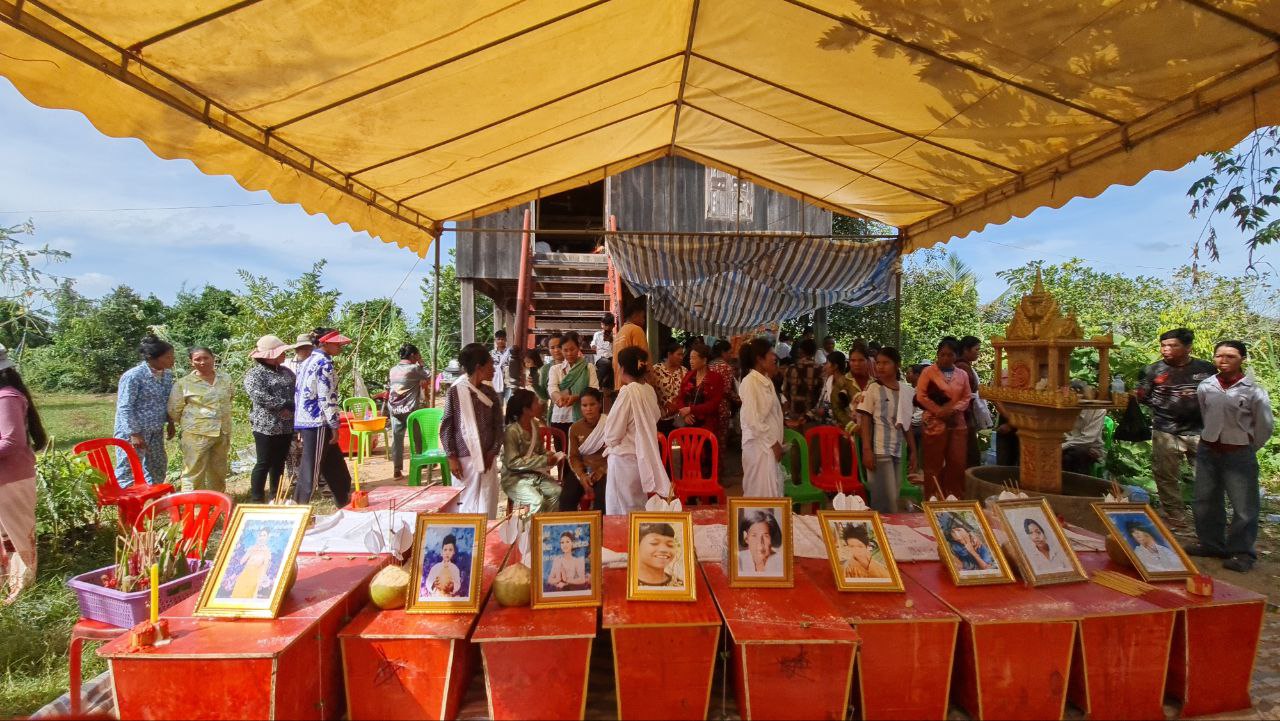 សពជនរងគ្រោះ៩នាក់ ត្រូវបានដាក់ក្នុងមឈូសចំនួន៩ហើយក៏ត្រូវបានដង្ហែយកទៅបញ្ចុះក្នុងរណ្តៅចំនួន៩ នៅចម្ងាយពីផ្ទះប្រមាណជាង៥០ម៉ែត្រ ។ ទាក់ទិននឹងឃាតករឃោរឃៅដែលចាប់ខ្លួនកំពុងស្ថិតនៅក្នុងការគ្រប់គ្រងដោយនគរបាលព្រហ្មទណ្ឌកម្រិតធ្ងន់នៃស្នងការដ្ឋានខេត្ត និងមិនបានផ្តល់ព័ត៌មានបន្ថែមអ្វីនោះទេ ។ ដោយការចូលរួមមរណទុក្ខសូមឧទ្ទិសដល់វិញ្ញាណក្ខន្ធជនរងគ្រោះទាំងអស់បានទៅកាន់សុគតិភពកុំបីឃ្លៀងឃ្លាតឡើយ ៕