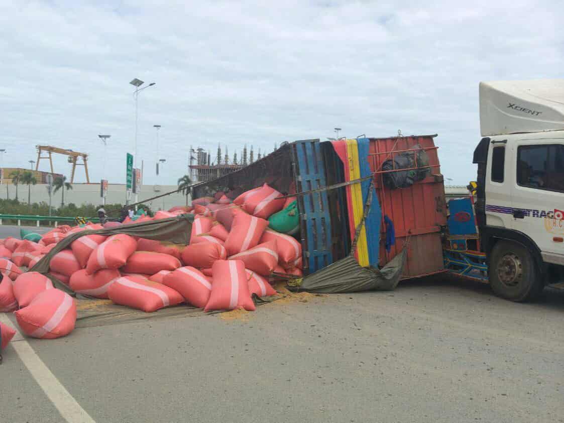 តាមសាក្សីបានអោយដឹងថា នៅមុនពេលកើតហេតុ រថយន្តដឹកស្រូវខាងលើធ្វើដំណើរតាមមហាវិថីឈ្នះឈ្នះក្នុងទិសដៅពីជើងទៅត្បូង លុះនៅពេលធ្វើដំណើរមកដល់ក្រោមស្ពានអាកាសផ្លូវល្បឿន លឿនក៏បានវាងរង្វង់មូល ដោយសារតែរថយន្តធ្វើដំណើររាង លឿន ស្ថានភាពកកស្ទះចរាចរណ៍និងបានជាន់ហ្វ្រាំង បង្ខំជាហេតុបណ្ដាលឱ្យ កាច់ទ្រុងក្រឡាប់ចាក់ស្រូវ ចោលពេញផ្លូវតែម្ដង។ទោះបីជាយ៉ាងណានេះចាត់ទុកជាសំណាងពុំបណ្ដាឲ្យមនុស្សរងរបួសហើយ។