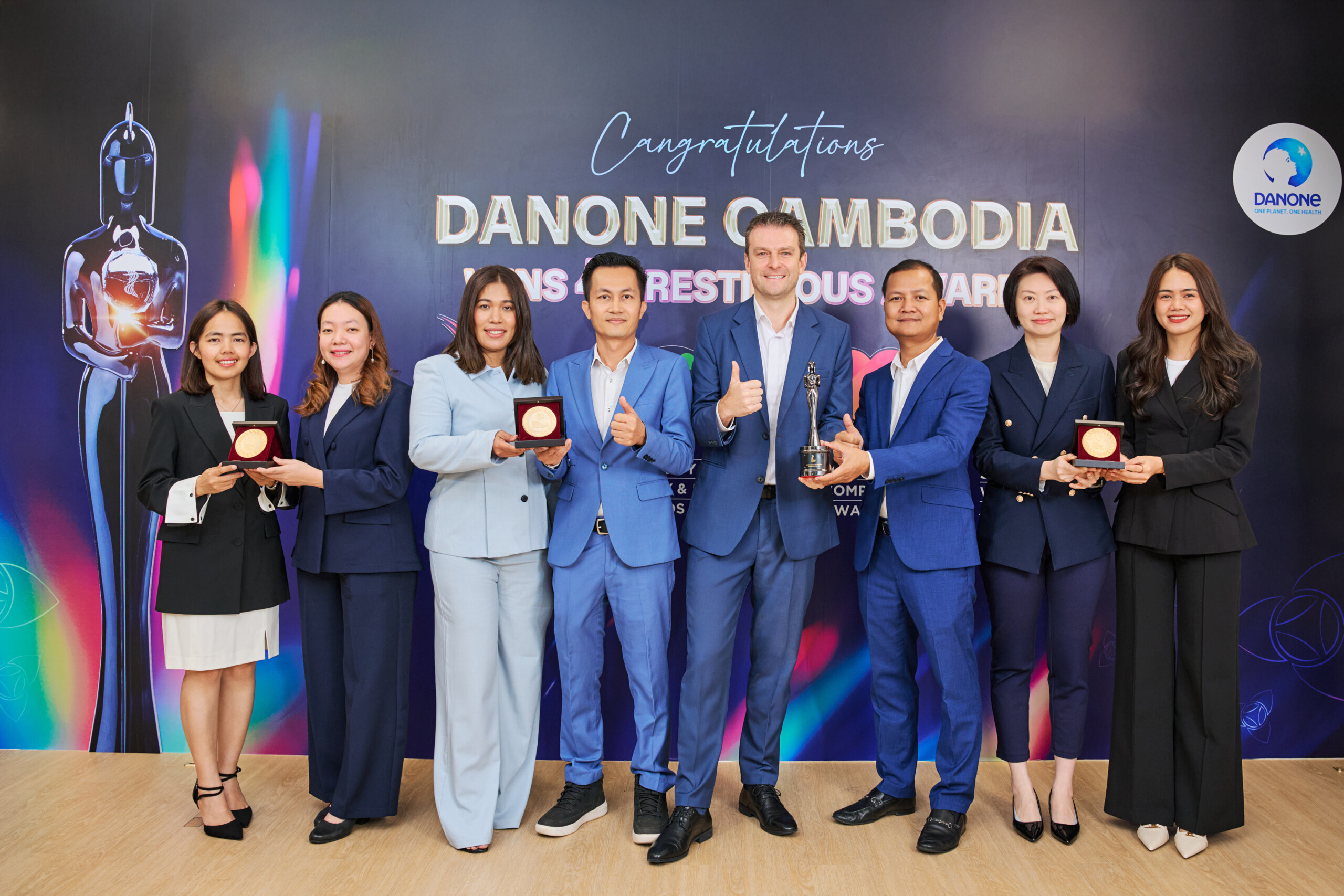រាជធានីភ្នំពេញ៖ ក្រុមហ៊ុន Danone កម្ពុជា បានបង្កើតប្រវត្តិសាស្ត្រ ជាក្រុមហ៊ុន FMCG ដំបូងគេក្នុងប្រទេសកម្ពុជា ដែលបានឈ្នះពានរង្វាន់និយោជកឆ្នើមអាស៊ីក្នុងឆ្នាំ២០២៥ ចំនួនបួននៅប្រទេសសិង្ហបុរី។ ពានរង្វាន់ទាំង ៤ មាន៖ HR Asia Best Companies to Work for in Asia, HR Asia Most Caring Company Award, HR Asia Diversity, Equity & Inclusion Award និង HR Asia Sustainable Workplace Award 2025។ ការឈ្នះពានរង្វាន់ ពីរឆ្នាំផ្ទួនគ្នានេះ បង្ហាញពីគោលជំហរ ក្នុងការបន្តពង្រឹងភាពជាអ្នកដឹកនាំរបស់ Danone កម្ពុជា ក្នុងផ្នែកសុខុមាលភាពនិយោជិក ការរួមបញ្ចូលនិងភាពចម្រុះ និងនិរន្តរភាពនៅក្នុងស្ថាប័ន ។