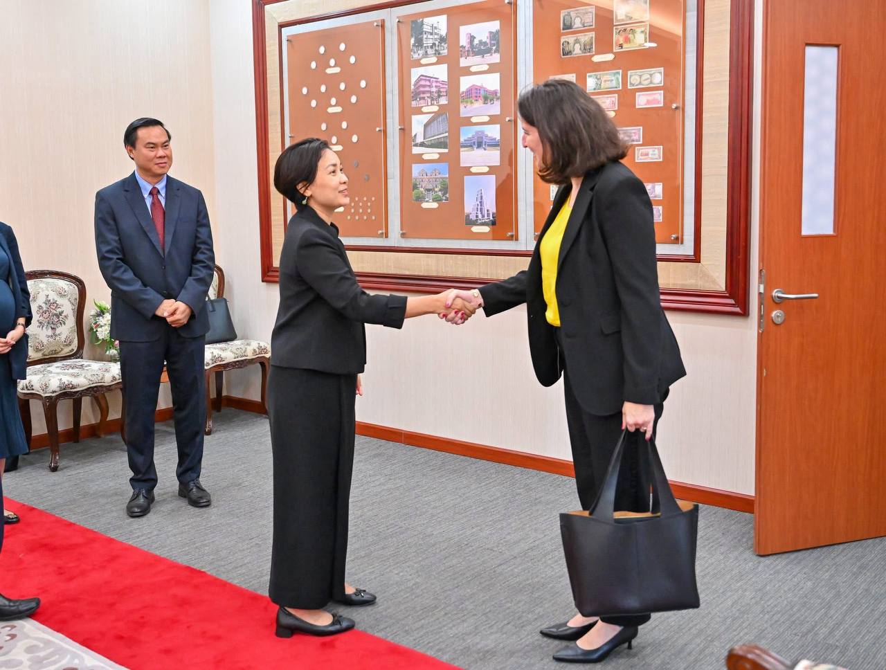 រាជធានីភ្នំពេញ៖ លោកជំទាវបណ្ឌិត ជា សិរី ទេសាភិបាល ធនាគារជាតិនៃកម្ពុជា បានអនុញ្ញាតឱ្យលោកស្រី Tania Meyer ប្រធានគ្រប់គ្រង ធនាគារពិភពលោកប្រចាំកម្ពុជា និងសហការី ចូលជួបសម្តែងការគួរសម និងពិភាក្សាការងារ នារសៀលថ្ងៃទី២៥ ខែវិច្ឆិកា ឆ្នាំ២០២៥ នៅធនាគារជាតិនៃកម្ពុជា អគារវត្តភ្នំ ។
