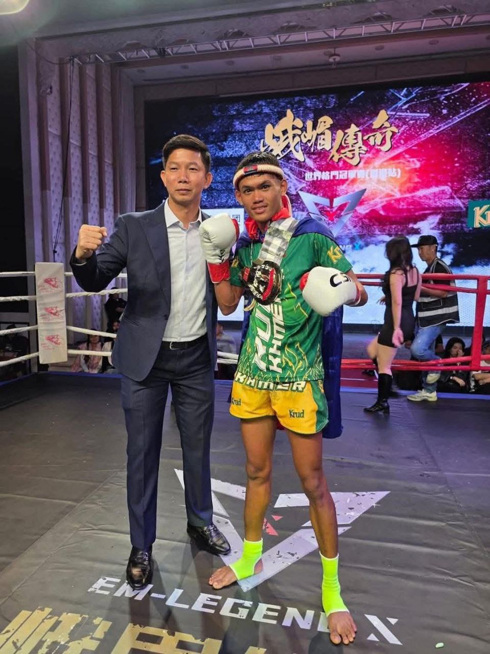 ទីក្រុងហុងកុង ៖ ក្នុងដំណើរបេសកកម្មទៅផ្សព្វផ្សាយក្បាច់គុនបូរាណខ្មែរនៅទីក្រុងហុងកុង ប្រទេសចិន កាលពីថ្ងៃទី២៥ ខែវិច្ឆិកា ឆ្នាំ២០២៥ កីឡាករ ប្រាក់ ចិត្រា ទទួលការសាទរយ៉ាងខ្លាំងពីអ្នកគាំទ្រវិស័យកីឡាប្រដាល់គុនខ្មែរបន្ទាប់ពីរូបគេឈ្នះខ្សែក្រវាត់១គ្រឿងពីកីឡាករចិន CHEN JIASHENG ក្នុងប្រភេទទម្ងន់៥១គីឡូក្រាម។