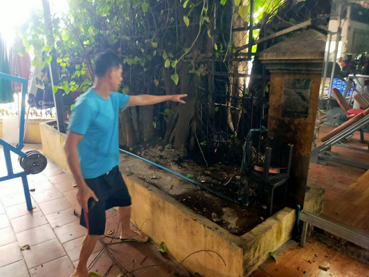 លោកចាន់ សូវង្ស បាននិយាយថា ពេលនោះ គាត់បានរត់មកជួយពន្លត់ ស្រែកហៅគាត់ឲ្យដឹង ។ ភ្លើងមិនបានឆេះរាលដាលទេ វាឆេះអេប៉ុងដែលជនល្មើសចាក់សាំងដុតរួចបោះទៅលើដំបូល ហើយនៅផ្នែកខាងក្រោមដែលមានរបងដែកជាប់នឹងដើមពោធិ៍ធំភ្លើងបានឆេះស្លឹកឈើ ហើយរាលចូលខាងក្នុងឆេះទុយោទឹកបន្តិច ធ្វើឲ្យធ្លាយបាញ់ពន្លត់ភ្លើងនោះវិញ តែមិនខូចខាតដល់សំណង់ ឬឧបករណ៍កីឡាទេ ។