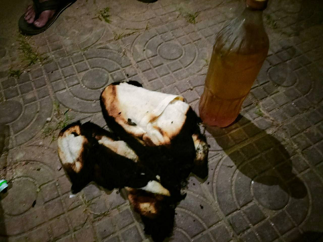 សមត្ថកិច្ចបាននិយាយថា នៅកន្លែងកើតហេតុ ជនដៃដល់បានបន្សល់ទុកសាំង០១ដបចំណុះប្រហែល០២លីត្រ តែ០១ដបទៀតបានចាក់ដុតអស់ហើយ និងសំណល់អេប៉ុងដែលឆេះមិនទាន់អស់ ។ ដបសាំងទាំងនេះ ត្រូវបានច្រកចូលក្នុងកេះក្រដាស ហើយមន្ត្រីប៉ុស្ដិ៍រដ្ឋបាលស្វាយប៉ោបានប្រមូលទុកជាវត្ថុតាងហើយ ។