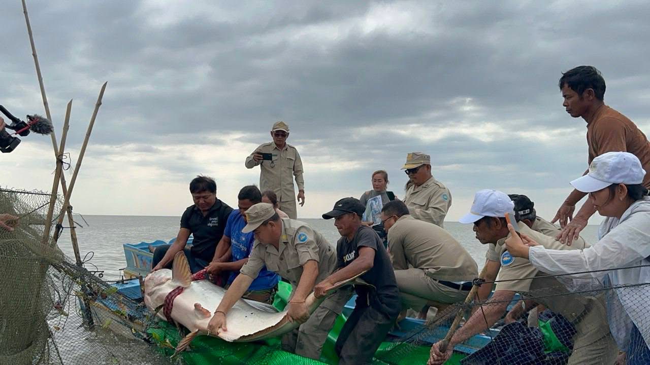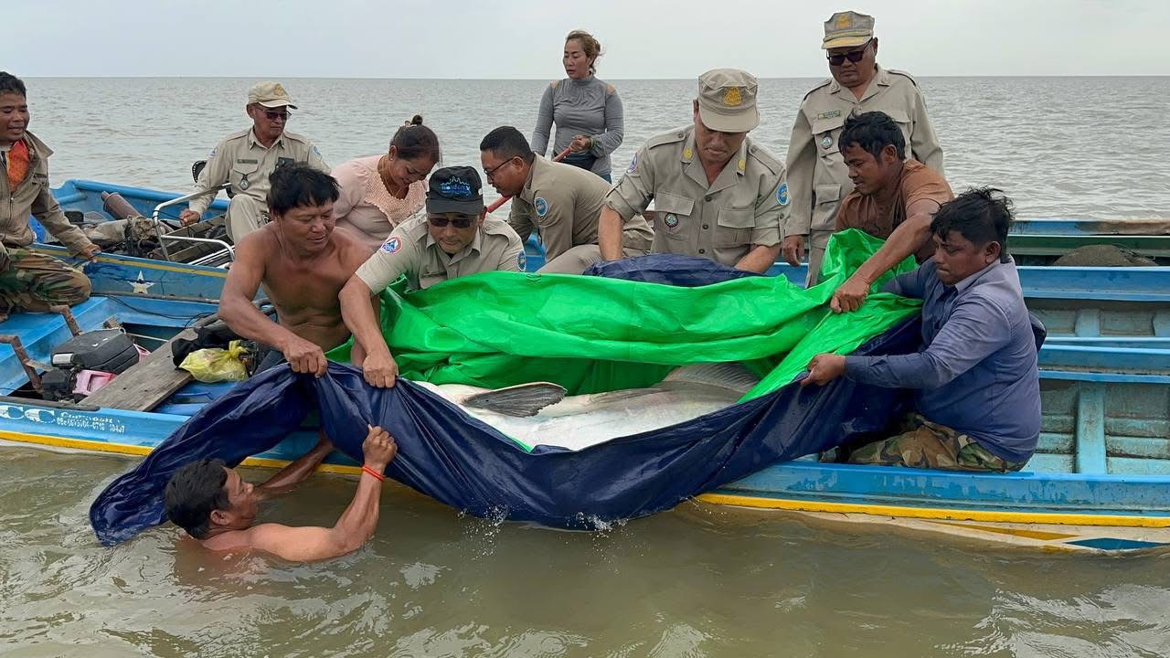 ខេត្តសៀមរាប ៖ មន្ទីរព័ត៌មានខេត្តសៀមរាប បានប្រកាសនារសៀល ថ្ងៃទី២៧ខែវិច្ឆិកានេះថា ត្រីរាជមួយក្បាល ដែលជាប្រភេទមច្ឆជាតិកម្រជិតផុតពូជ មានទម្ងន់ ៩៥គីឡូក្រាម ត្រូវបានអាជ្ញាធរជំនាញ និងភាគីពាក់ព័ន្ធធ្វើការបំពាក់ស្លាកសម្គាល់ និងលែងចូលទៅក្នុងបឹងទន្លេសាបវិញ ដោយសុវត្ថិភាពក្បែរតំបន់អភិរក្សជលផលអតីតឡូតិ៍នេសាទលេខ៤ ក្នុងភូមិសាស្ត្រខេត្តសៀមរាប នៅថ្ងៃទី២៦ ខែវិច្ឆិកា ឆ្នាំ២០២៥នេះ ។