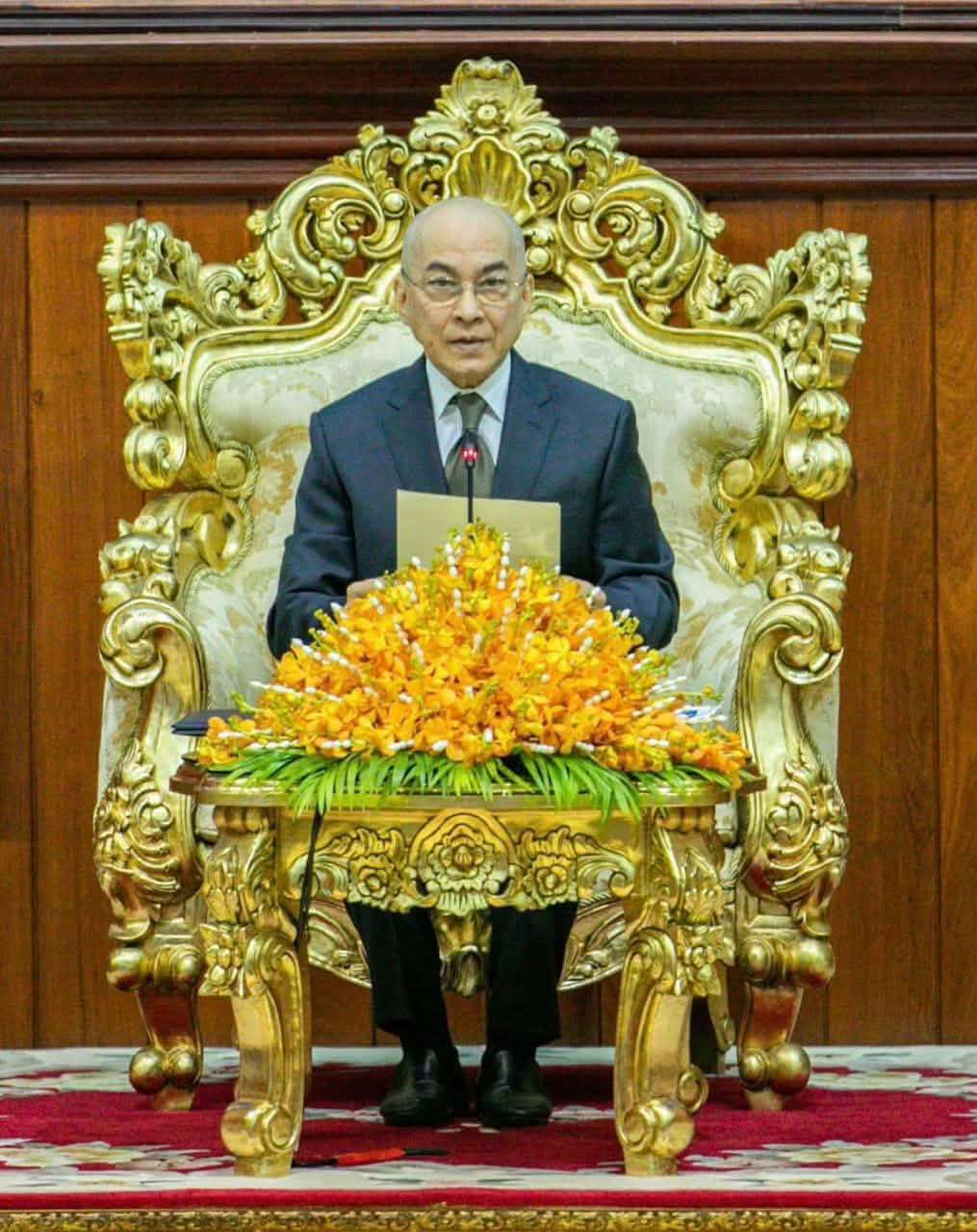 ព្រះករុណា ព្រះបាទ សម្តេចព្រះបរមនាថ នរោត្តម សីហមុនី ក៏បានសាទរយ៉ាងជ្រាលជ្រៅចំពោះការដឹកនាំប្រកបដោយភាពវាងវៃ និងមនសិការស្នេហាជាតិដ៏ស្មោះសរបស់សម្តេចអគ្គមហាសេនាបតីតេជោ ហ៊ុន សែន ប្រធានព្រឹទ្ធសភា និងជាប្រធានក្រុមឧត្តមប្រឹក្សាផ្ទាល់ព្រះមហាក្សត្រ និងសម្តេចមហាបវរធិបតី ហ៊ុន ម៉ាណែត នាយករដ្ឋមន្ត្រី ដែលមានភាពប៉ិនប្រសប់ក្នុងការដឹកនាំ និងគ្រប់គ្រងសភាពការណ៍របស់ប្រទេសជាតិដើម្បី ធានាបាននូវប្រក្រតីភាព និងបន្តការអភិវឌ្ឍ ហើយជានិច្ចកាលតែងនៅរួមសុខ រួមទុក្ខជាមួយប្រជាពលរដ្ឋនៅគ្រប់កាលៈទេសៈ ជាពិសេស បេសកកម្មក្នុងការការពារអធិបតេយ្យឯករាជ្យ បូរណភាព ទឹកដី សិទ្ធិសេរីភាព និងភាពថ្លៃថ្នូររបស់ប្រជាពលរដ្ឋគ្រប់រូបតាមរយៈយន្តការការទូត និងច្បាប់អន្តរជាតិ។