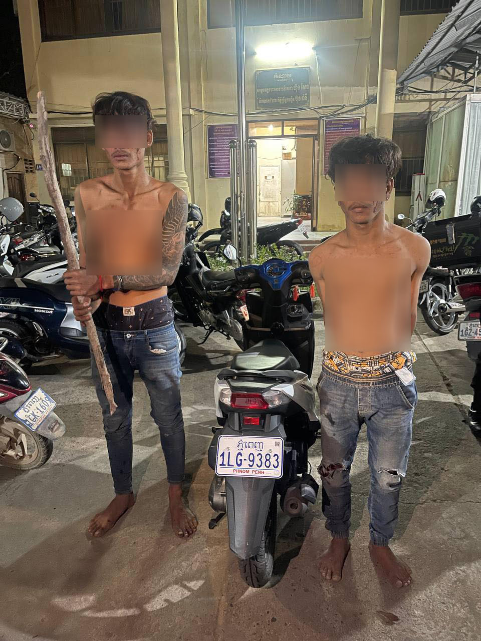 រាជធានីភ្នំពេញ៖ នាងកម្មការិនីរោងចក្រកាត់ដេរម្នាក់បានជិះម៉ូតូ១គ្រឿងចេញពីធ្វើការពេលយប់តែម្នាក់ឯងតាមផ្លូវលំ លុះពេលទៅដល់កន្លែងស្ងាត់ ក៏ស្រាប់តែមានជនសង្ស័យ២នាក់ស្ទាក់ផ្លូវ រួចស្ទុះទៅវាយ៣ដំបងឈើប្លន់យកម៉ូតូ ។ បន្ទាប់ពីប្លន់បានសម្រេចជនសង្ស័យខាងលើក៏បានជិះគេចខ្លួន ហើយនាងបានស្រែកឆោឡោបង្កការភ្ញាក់ផ្អើលដល់នគរបានខណ្ឌដង្កោចេញពួនស្ទាក់ ហើយកន្លះម៉ោងក្រោយមក ក៏ចាប់ជនសង្ស័យបានទាំង២នាក់និងយកម៉ូតូបានវិញ ។