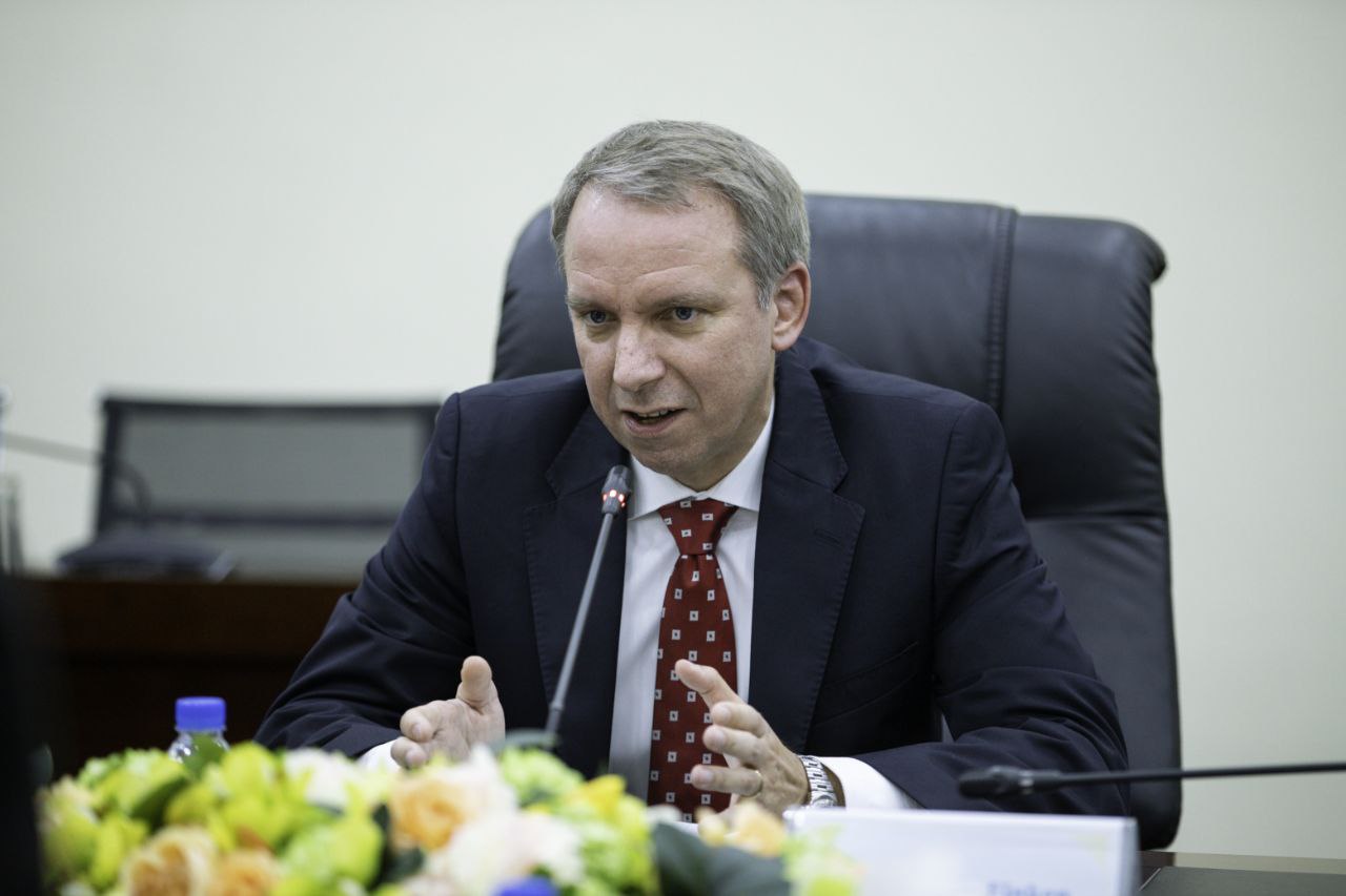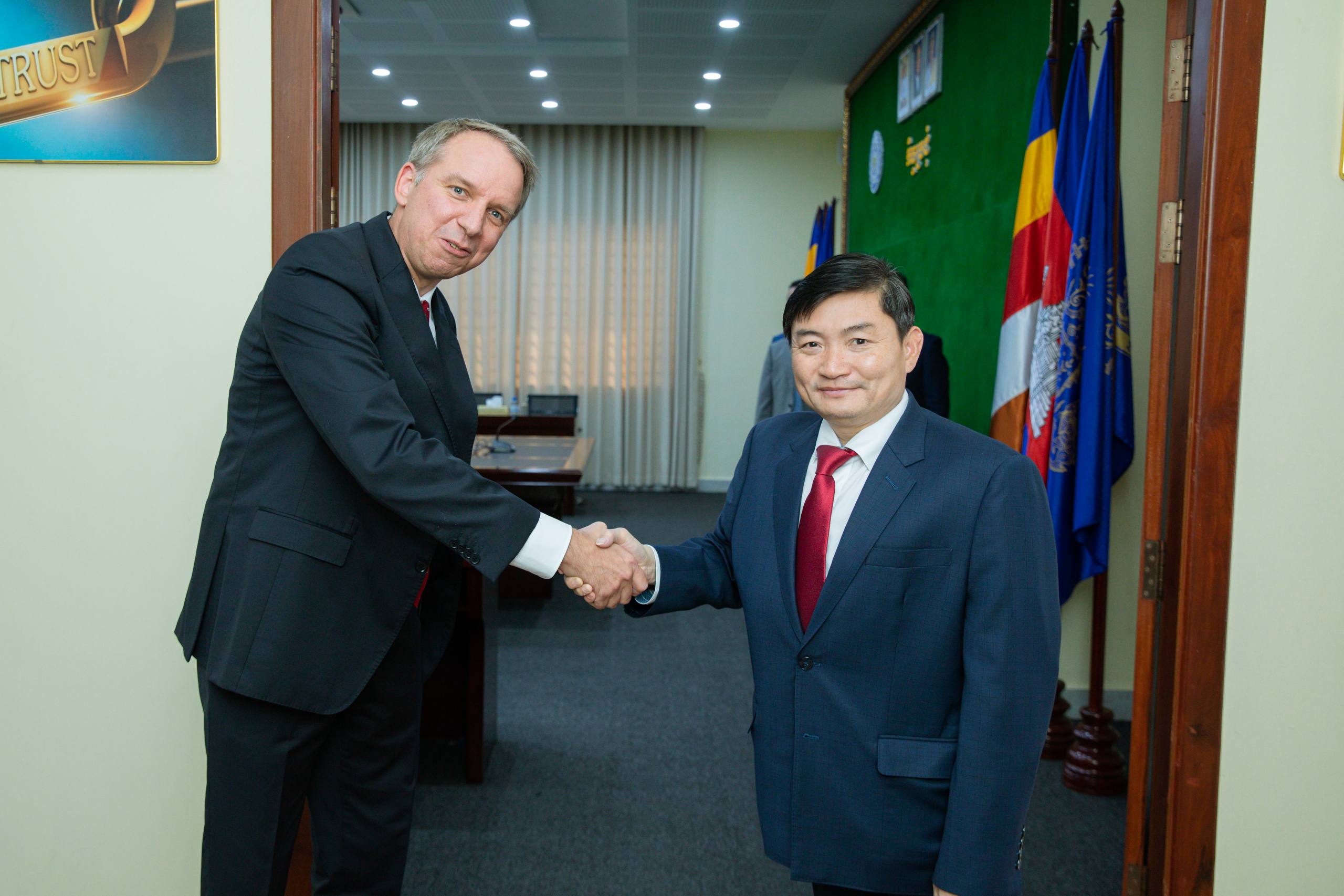 នាឱកាសនោះ ឯកឧត្ដមរដ្ឋមន្ត្រី បានសម្តែងនូវការស្វាគមន៍យ៉ាងកក់ក្តៅចំពោះ លោក Thomas Finken និងបានបញ្ជាក់ជូននូវការគាំទ្រយ៉ាងពេញទំហឹងចំពោះគំនិតផ្តួចផ្តើមក្នុងការចង់បានកិច្ចសហប្រតិបត្តិការរវាងធនាគារអភិវឌ្ឍន៍អាល្លឺម៉ង់ (KFW) ជាមួយក្រសួងការងារ និងបណ្ដុះបណ្ដាលវិជ្ជាជីវៈ ជាពិសេសពាក់ព័ន្ធនឹងវិស័យសន្តិសុខសង្គម។ បន្ថែមពីនេះ ឯកឧត្ដមរដ្ឋមន្ត្រី ក៏បានលើកឡើងនូវកាលានុវត្តភាពនៃកិច្ចសហការជាមួយធនាគារអភិវឌ្ឍន៍អាល្លឺម៉ង់ (KFW) លើវិស័យបណ្ដុះបណ្ដាលវិជ្ជាជីវៈ ក្នុងគោលបំណងអភិវឌ្ឍធនធានមនុស្សនៅប្រទេសកម្ពុជា ។