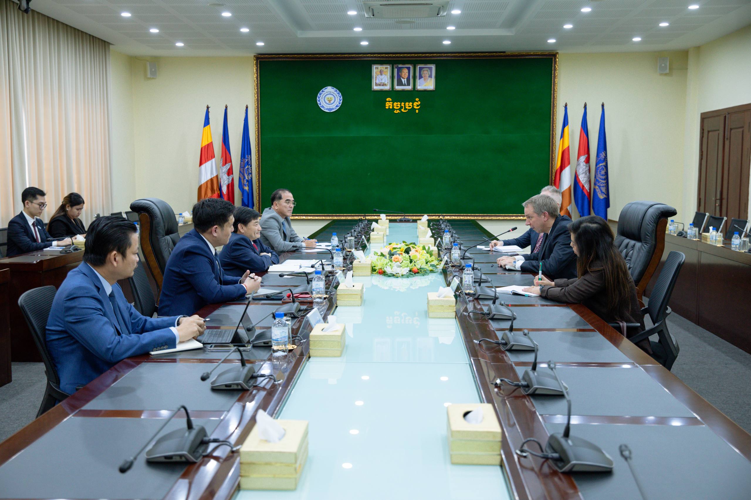 រាចធានីភ្នំពេញ ៖ កាលពីថ្ងៃទី ២៨ ខែវិច្ឆិកា ឆ្នាំ ២០២៥ ឯកឧត្តម ហេង សួរ រដ្ឋមន្ត្រីក្រសួងការងារ និងបណ្ដុះបណ្ដាលវិជ្ជាជីវៈ បានទទួលជួបពិភាក្សាការងារជាមួយលោក Thomas Finken តំណាងធនាគារអភិវឌ្ឍន៍អាល្លឺម៉ង់ (KFW) និងសហការី នៅទីស្តីការក្រសួង ។
