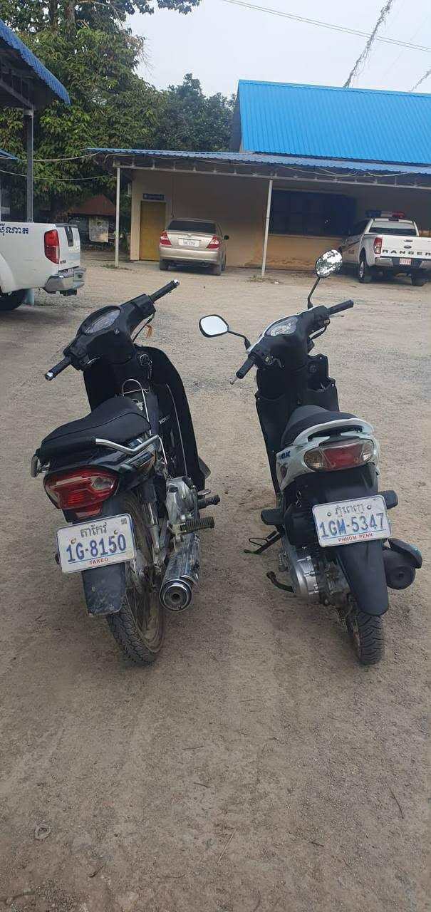 ក្នុងនោះ វត្ថុតាងចាប់យករួមមាន ៖ ម៉ូតូចំនួនពីរគ្រឿង ម៉ាក Honda dream C125 ពណ៌ខ្មៅ បិតតែមឆ្នាំ២០២០ ពាក់ផ្លាកលេខ តាកែវ 1G-8150 , ម៉ាក Suzuki nex បិទតែម ឆ្នាំ២០២៥ ពាក់ផ្លាកលេខ ភ្នំពេញ 1GM-5347 និងទូរស័ព្ទ០៤គ្រឿង ។