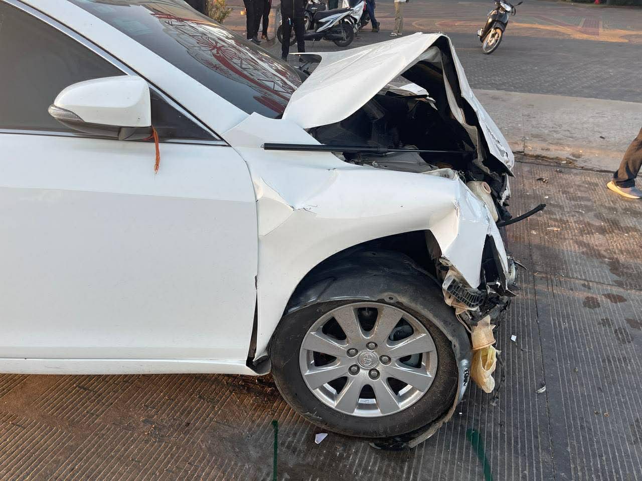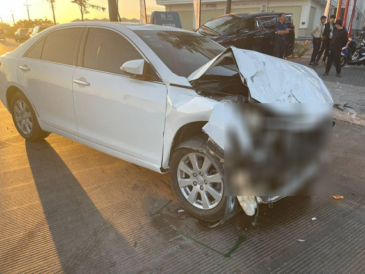 ប្រភពដដែលបានប្រាប់ឲ្យដឹងបន្តទៀតថា ខណៈនោះរថយន្តម៉ាកToyota Alphard វិល១ជុំខ្ទាតទៅលើចិញ្ចើមផ្លូវ និងរងការខូចខាតក្រពឹត១ចំហៀងខ្លួនខាងស្ដាំ រីឯរថយន្តCamaryខូចខាតខ្ទេចមុខ ហើយអ្នកបើកបរបោកផ្ទប់ដៃចង្កូតរថយន្តរបស់ខ្លួនរងរបួសធ្ងន់ធ្ងរ ។
