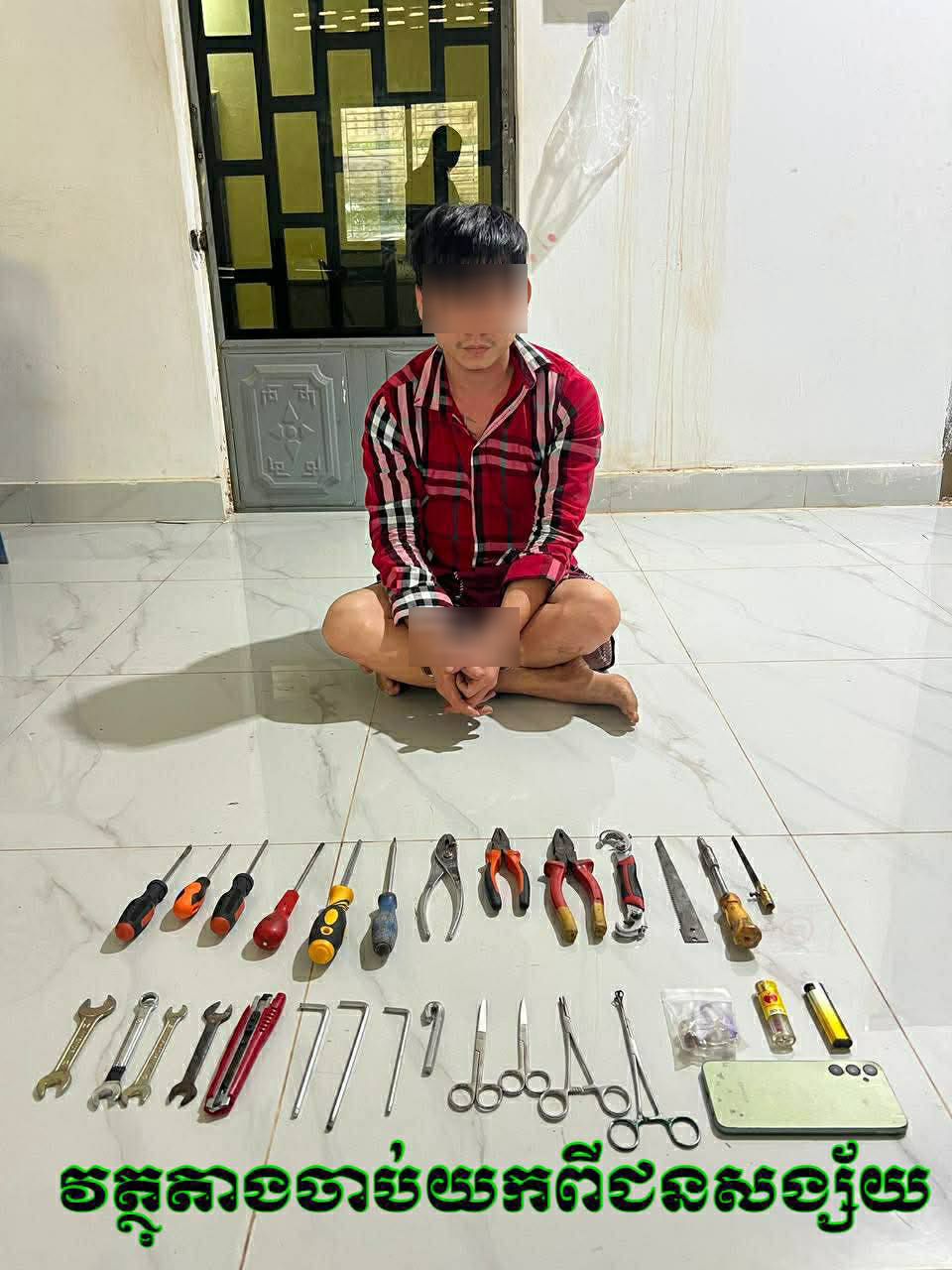 សមត្ថកិច្ចបានឲ្យដឹងទៀតថា នៅអំឡុងឆ្នាំ២០២៣ ជនរងគ្រោះឈ្មោះ ម៉ុម ចន្ទលី បានទិញផ្ទះល្វែងមួយខ្នងស្ថិតនៅក្នុងបុរីទួលសង្កែ ស្ថិតនៅភូមិស្វាយជ្រំ សង្កាត់ស្វាយជ្រំ ក្រុងអរិយក្សត្រ ខេត្តកណ្តាល ដើម្បីស្នាក់នៅ រហូតដល់ដើមឆ្នាំ២០២៥ ជនរងគ្រោះបានចាក់សោរទុកផ្ទះខាងលើចោល រួចទៅស្នាក់ជាមួយកូននៅរាជធានីភ្នំពេញ ។ ជារៀងរាល់ថ្ងៃចុងសប្តាហ៍ទើបជនរងគ្រោះមកមើលម្តង ។ លុះនៅថ្ងៃទី២៣ ខែវិច្ឆិកា ឆ្នាំ២០២៥ វេលាម៉ោង ០៩ និង ០០នាទីព្រឹក ជនរងគ្រោះបានមកមើលផ្ទះនៅចំណុចខាងលើដូចសព្វដង ក៏ឃើញសភាពនៅក្នុងផ្ទះរបស់ខ្លួន មានភាពរញ៉េរញ៉ៃ ដោយសង្ស័យថាមានចោរចូលផ្ទះ ទើបដើរត្រួតពិនិត្យមើលតាមបន្ទប់ឃើញទ្វាខូចរបើកចេញទាំងអស់ ទើបដឹងថាបាត់លុយចំនួន ៣០,០០០ដុល្លាអាមេរិក និងខ្សែកមាសចំនួន ០២ខ្សែ ទម្ងន់សរុប ៥តម្លឹង បន្ទាប់មកជនរងគ្រោះមកដាក់ពាក្យបណ្តឹងនៅសមត្ថកិច្ច ។