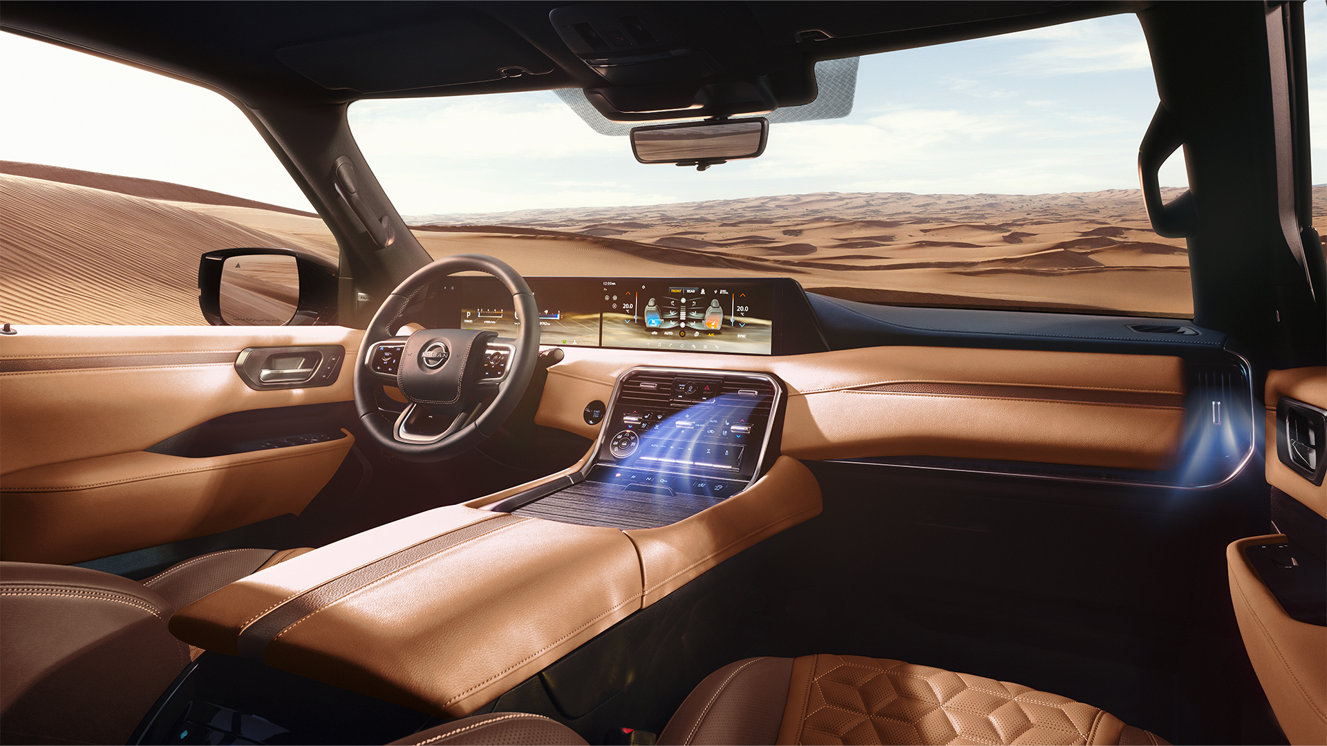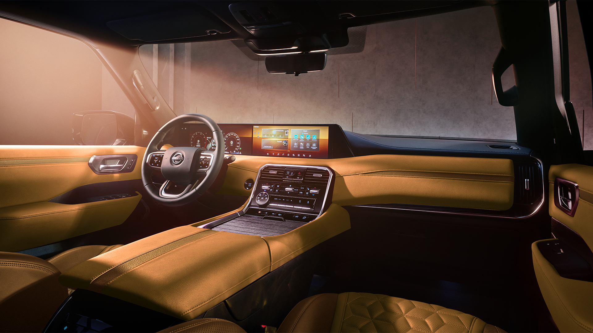 នៅខាងក្នុងរថយន្តនីសាន់ Patrol ស៊េរីថ្មី ផ្តល់ជូននូវកាប៊ីនដ៏ធំទូលាយ ពិសេសជាមួយនឹងកៅអីស្បែក ដំបូលបើកប្រើប្រាស់កញ្ចក់ Panoramic និងលក្ខណៈពិសេសទំនើបៗដូចជាអេក្រង់ Monolith ទំហំ 28.6 អ៊ីញ ដែលមានអេក្រង់ភ្លោះទំហំ 14.3 អ៊ីង ដែលផ្តល់នូវទិដ្ឋភាពដ៏ទូលំទូលាយក្នុងការស្វែងរក ការកម្សាន្ត និងព័ត៌មានអំពីរថយន្ត។ វាត្រូវបានរចនាដោយហ្មត់ចត់ គិតគូរពីរចនាសម្ព័ន្ធកៅអីបីជួរ ផ្តល់កន្លែងទំនេរច្រើន ដើម្បីសម្រួលដល់អ្នកដំណើររហូតដល់ 8 នាក់ ដោយកៅអីនីមួយៗអាចលៃតម្រូវបានតាមចំណង់ចំណូលចិត្តបុគ្គល។ អ្នកដំណើរជួរទីពីរទទួលបានភាពរីករាយបន្ថែមទៀតជាមួយនឹងអេក្រង់កម្សាន្តទំហំ 12.8 អ៊ីញ ចំនួន 2 ដែលគាំទ្រការកម្សាន្តពេលធ្វើដំណើរ ។