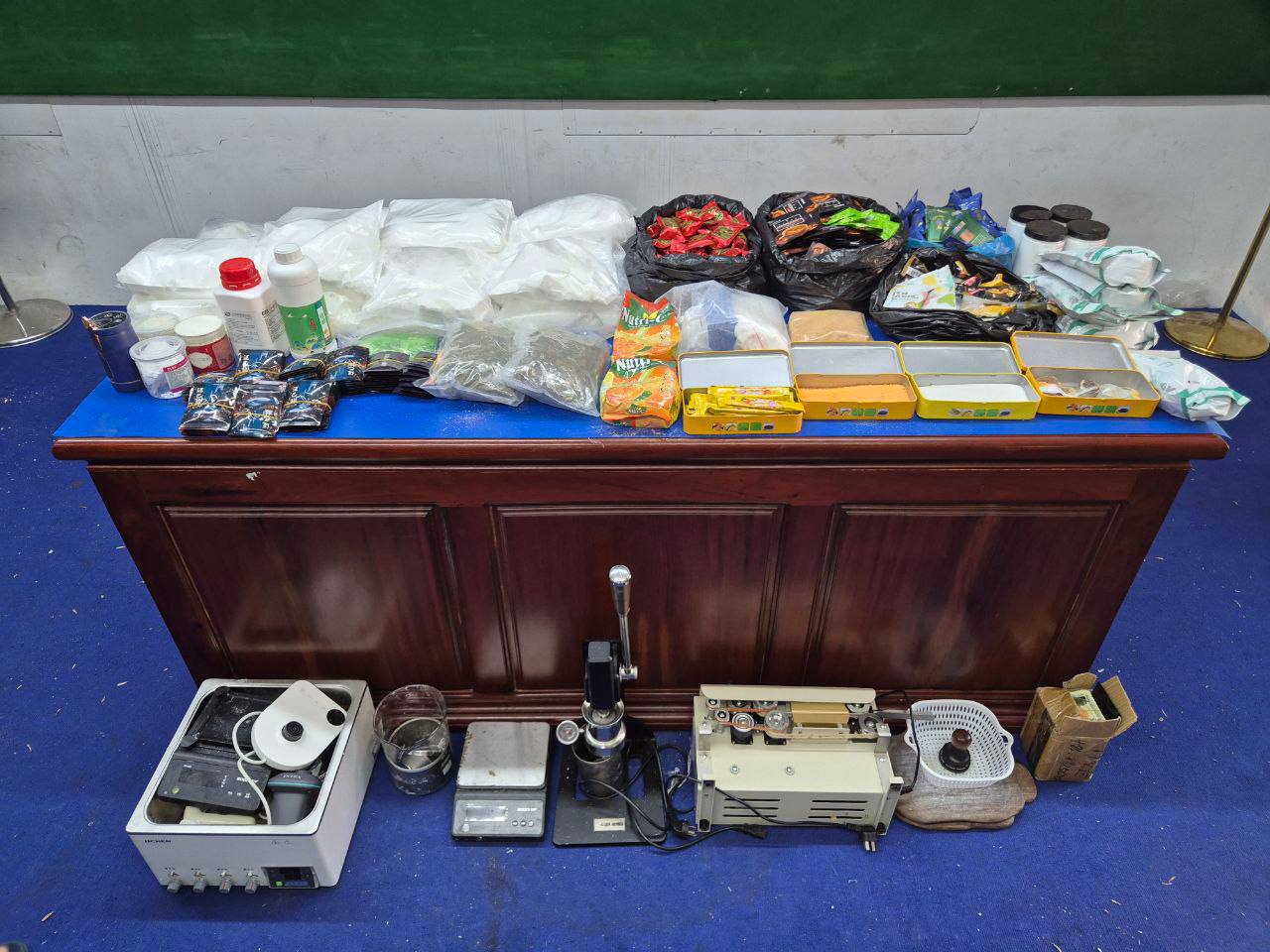 វត្ថុតាងចាប់យកបានរួមមានសារធាតុញៀនប្រភេទកូកាអុីន (Cocaine) ទម្ងន់ ១២,១៧៤.៨៩ក្រាម ។សារធាតុញៀនប្រភេទ អុិចស្ត្រាស៊ី (MDMA) ទម្ងន់៥,៨២១.៥៨ក្រាម ។