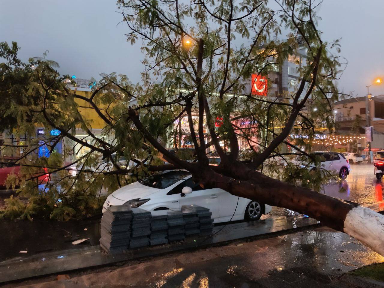 តាមព័ត៌មានបានឲ្យដឹងថា នៅមុនពេលកើតហេតុ គេឃើញស្ត្រីម្នាក់ បានបើករថយន្តមួយគ្រឿងខាងលើ ឈប់ចតនៅក្រោមដើមក្ងោក ដូចសព្វដង រួចក៏ចុះដើរហាត់ប្រាណ។ ខណៈនោះ មេឃងងឹត លាយឡំទៅនឹងខ្យល់កន្ត្រាក់ បណ្តាលឱ្យដើមក្ងោកមួយដើមបានដួលរលំ រលើងទាំងឫស សង្កត់លើរថយន្តមួយគ្រឿង បណ្ដាលឲ្យរងការខូចខាត។ លុះក្រោយមក ភ្លៀងក៏បានបង្អុរធ្លាក់នៅតាមតំបន់មួយចំនួន ហើយតំបន់មួយចំនួនទៀត ពុំមានភ្លៀងធ្លាក់ឡើយ ។