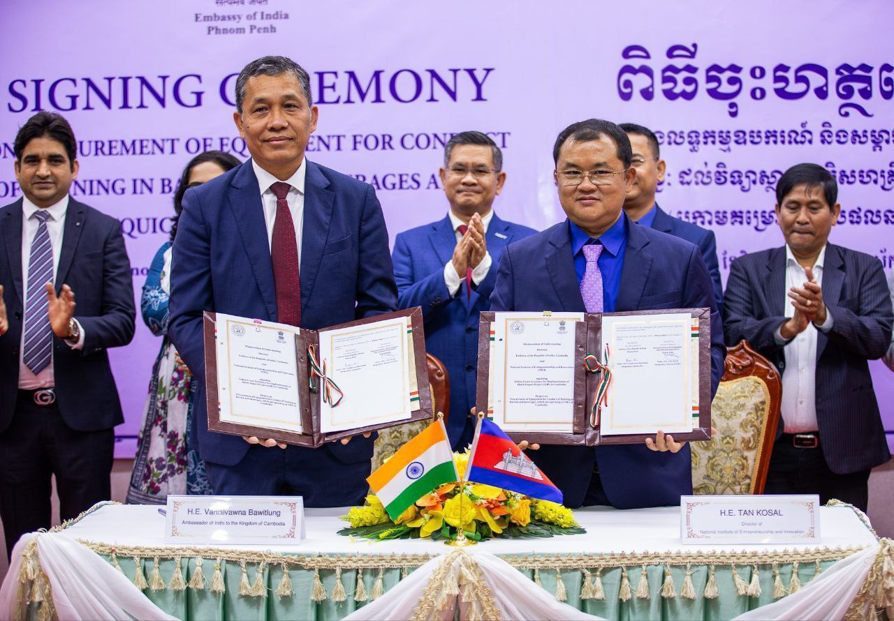 រាជធានីភ្នំពេញ ៖ នៅថ្ងៃទី៣ ខែធ្នូ ឆ្នាំ២០២៥ លោក ម៉ុល វិបុល អនុរដ្ឋលេខាធិការ ក្រសួងការងារ និងបណ្ដុះបណ្ដាលវិជ្ជាជីវ: តំណាងដ៏ខ្ពង់ខ្ពស់ឯកឧត្តមរដ្ឋមន្ត្រី ហេង សួរ បានអញ្ជើញចូលរួមជាសក្ខីភាពក្នុងពិធីចុះអនុស្សរណៈ នៃការយោគយល់គ្នារវាងស្ថានទូតឥណ្ឌា និងវិទ្យាស្ថានជាតិសហគ្រិនភាព និងនវានុវត្តន៍ (NIEI) ។