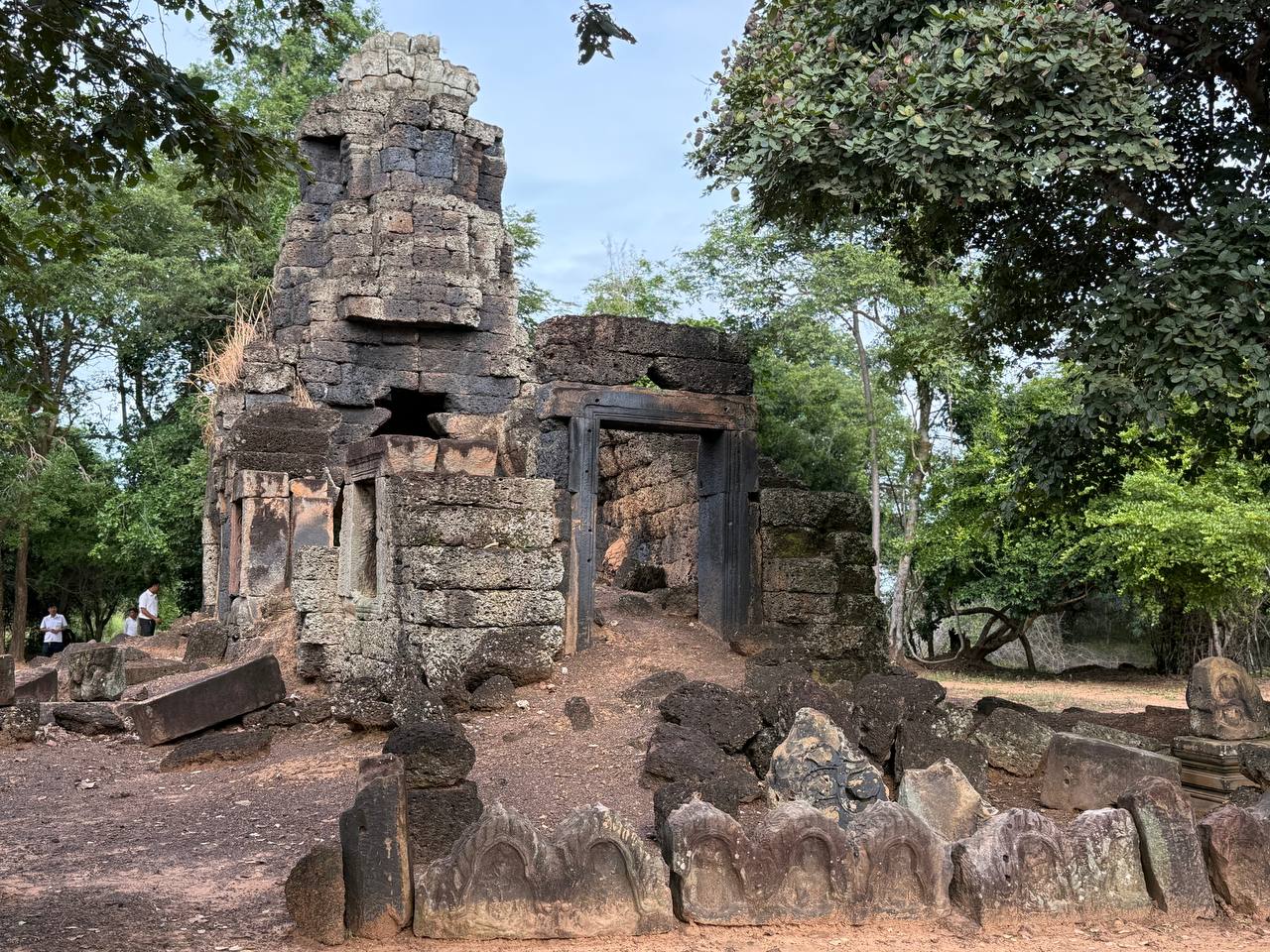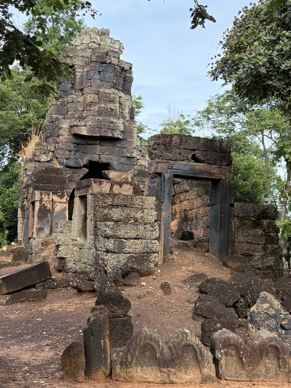 សំណង់នេះ ហាក់ដូចជា ត្រូវបានកសាងឡើងនៅផ្នែកខាងក្នុងនៃតួប៉ម យើងមើលឃើញបល្ល័ង្គបី និងកំពូលប្រាសាទធ្វើពីថ្មភក់ ។ ផ្តែរនៅផ្នែកខាងលិច មានលំអក្បាច់ផងដែរ ។ ប្រាសាទនេះមានសេះរាងចតុកោណកែង ដែលស្ថិតនៅចំកែងនៃជ្រុងទាំងបួនរបស់ប្រាសាទ ៕