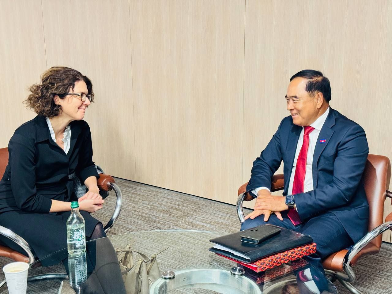 ហ្សឺណែវ ប្រទេសស្វីស ៖ ឯកឧត្តមបណ្ឌិត លី ធុជ ទេសរដ្ឋមន្ត្រី អនុប្រធានទី១ អាជ្ញាធរមីន កាលពីថ្ងៃទី៣ ខែធ្នូ ឆ្នាំ២០២៥ បានទទួលជំនួបទ្វេភាគីជាមួយលោកស្រី Caroline Worgotter ប្រធានអនុសញ្ញាសព្វាវុធ នៃក្រសួងការបរទេសអូទ្រីស ។