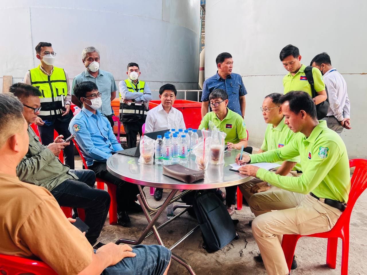 រាជធានីភ្នំពេញ ៖ មន្ត្រីក្រុមការងារអធិការកិច្ច នៃអគ្គនាយកដ្ឋានគាំពារបរិស្ថាន នៃក្រសួងបរិស្ថាន ដឹកនាំដោយលោក ចាប យុធី អនុប្រធាននាយកដ្ឋាន ដោយមានការចូលរួមពីក្រសួងឧស្សាហកម្ម វិទ្យាសាស្ត្រ បច្ចេកវិទ្យា និងនវានុវត្តន៍ ក្រសួងការងារ បណ្តុះបណ្តាលវិជ្ជាជីវៈ មន្ទីរបរិស្ថានរាជធានីភ្នំពេញ រដ្ឋបាលខណ្ឌពោធិ៍សែនជ័យ និងអាជ្ញាធរមូលដ្ឋាន នៅថ្ងៃទី២ ខែធ្នូ ឆ្នាំ២០២៥ បានធ្វើការចុះត្រួតពិនិត្យ ករណីធ្លាយឧស្ម័នអាម៉ូញាក់ នៅក្នុងទីតាំងរោងចក្រផលិតទឹកកក ឆេង សុភារី ស្ថិតនៅភូមិត្រពាំងថ្លឹង៤ សង្កាត់ចោមចៅទី១ ខណ្ឌពោធិ៍សែនជ័យ រាជធានីភ្នំពេញ ។