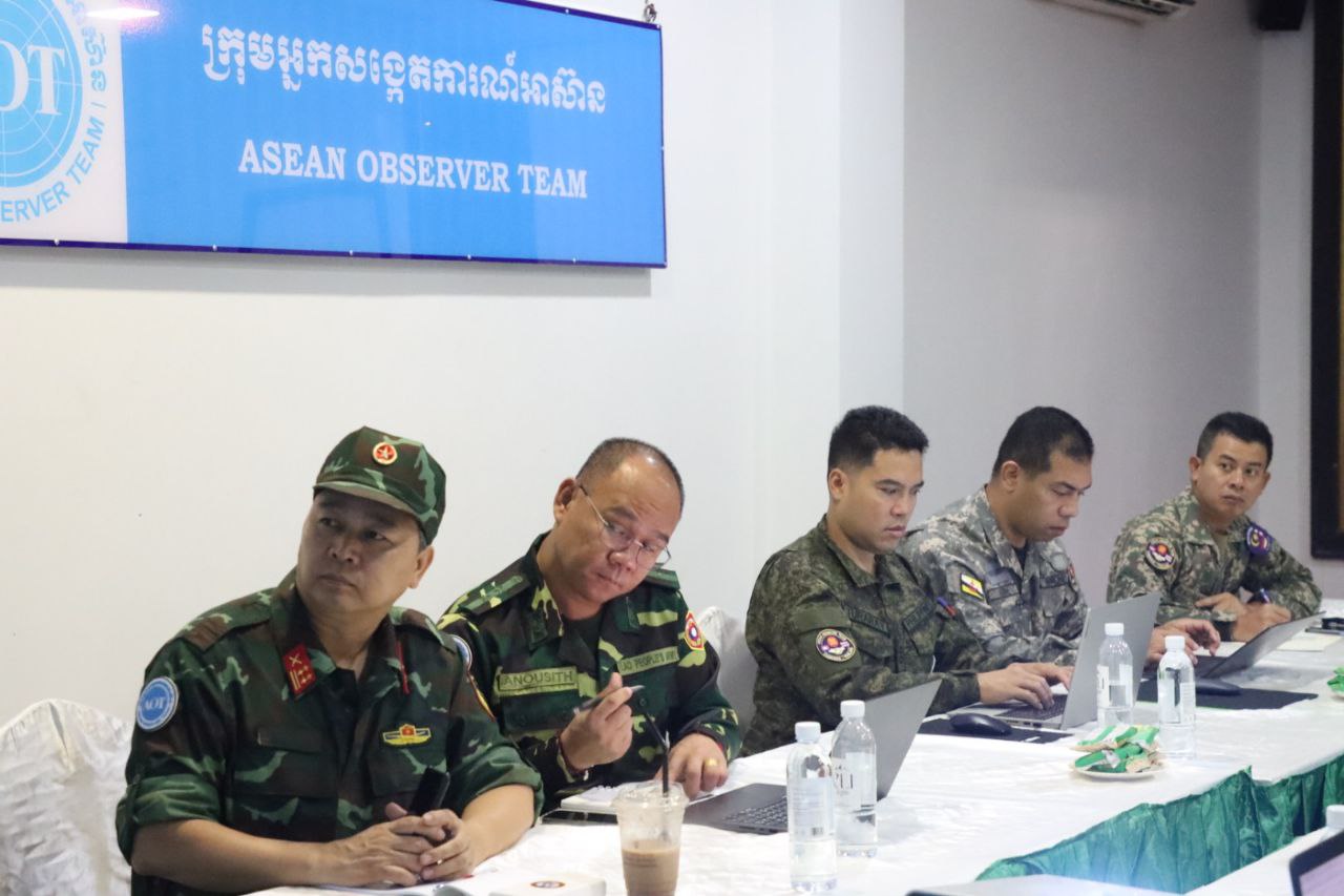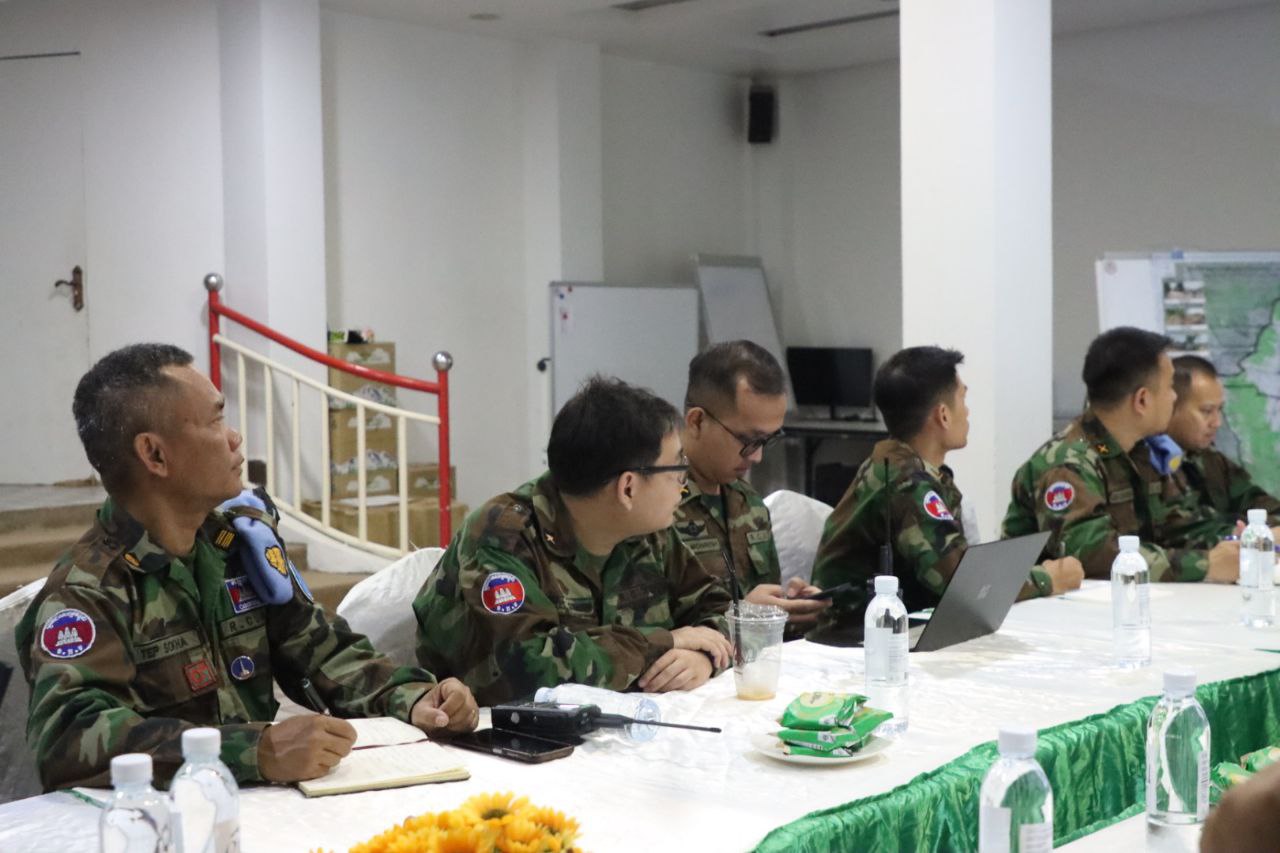 នៅថ្ងៃសុក្រ ទី៥ ខែធ្នូ ឆ្នាំ២០២៥ វេលាម៉ោង០៩:៣០នាទីព្រឹក ក្រុមការងារសម្របសម្រួលអ្នកសង្កេតការណ៍របស់ក្រសួងការពារជាតិ នៃព្រះរាជាណាចក្រកម្ពុជា (CLG) បានធ្វើការសម្របសម្រួលជូនដល់ក្រុមអ្នកសង្កេតការណ៍អាស៊ាន (AOT) ទទួលស្តាប់បទបង្ហាញពីលោក ព្រំសឿន វឌ្ឍន: ប្រធានក្រុមវាស់វែងចម្រុះកម្ពុជា-ថៃ នៃរដ្ឋលេខាធិការដ្ឋានកិច្ចការព្រំដែន ស្តីពីវឌ្ឍនភាព នៃការបោះបង្គោលព្រំដែនលេខ ៥២-៥៩ (ឃុំកំរៀង និងឃុំបឹងរាំង ស្រុកកំរៀង ខេត្តបាត់ដំបង) នៅទីស្នាក់ទី២ ក្រុងសិរីសោភ័ណ ខេត្តបន្ទាយមានជ័យ ។