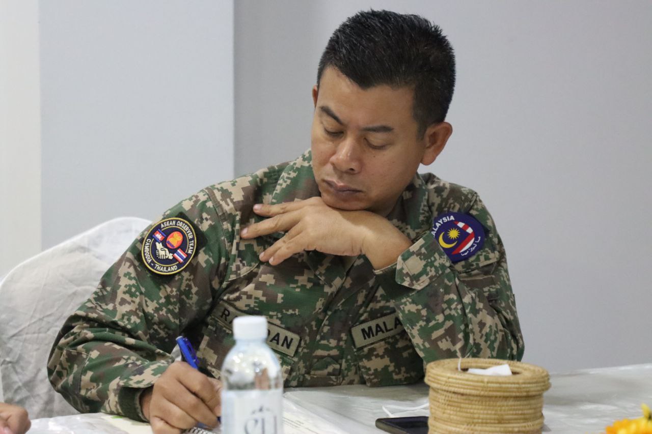 ខេត្តបន្ទាយមានជ័យ ៖ លោកជំទាវ ឧត្តមសេនីយ៍ឯក ម៉ាលី សុជាតា អ្នកនាំពាក្យក្រសួងការពារជាតិ បានឱ្យដឹងថា ក្រុមការងារសម្របសម្រួលអ្នកសង្កេតការណ៍របស់ក្រសួងការពារជាតិ (CLG) បានរៀបចំនិងសម្របសម្រួលជូន ក្រុមអ្នកសង្កេតការណ៍អាស៊ាន (AOT) ដើម្បីទទួលស្តាប់បទបង្ហាញដ៏សំខាន់មួយ ស្តីពីវឌ្ឍនភាពនៃការវាស់វែង និងបោះបង្គោលព្រំដែនកម្ពុជា-ថៃ ។