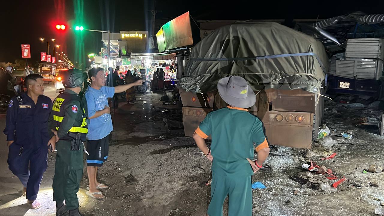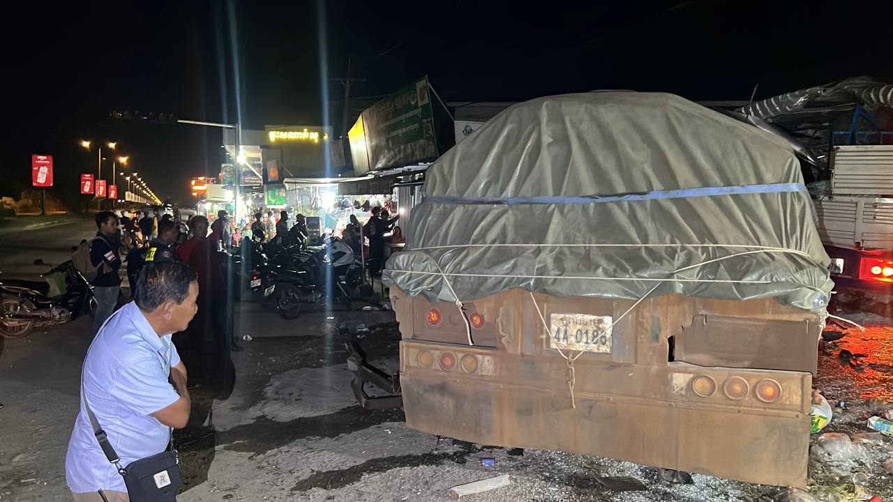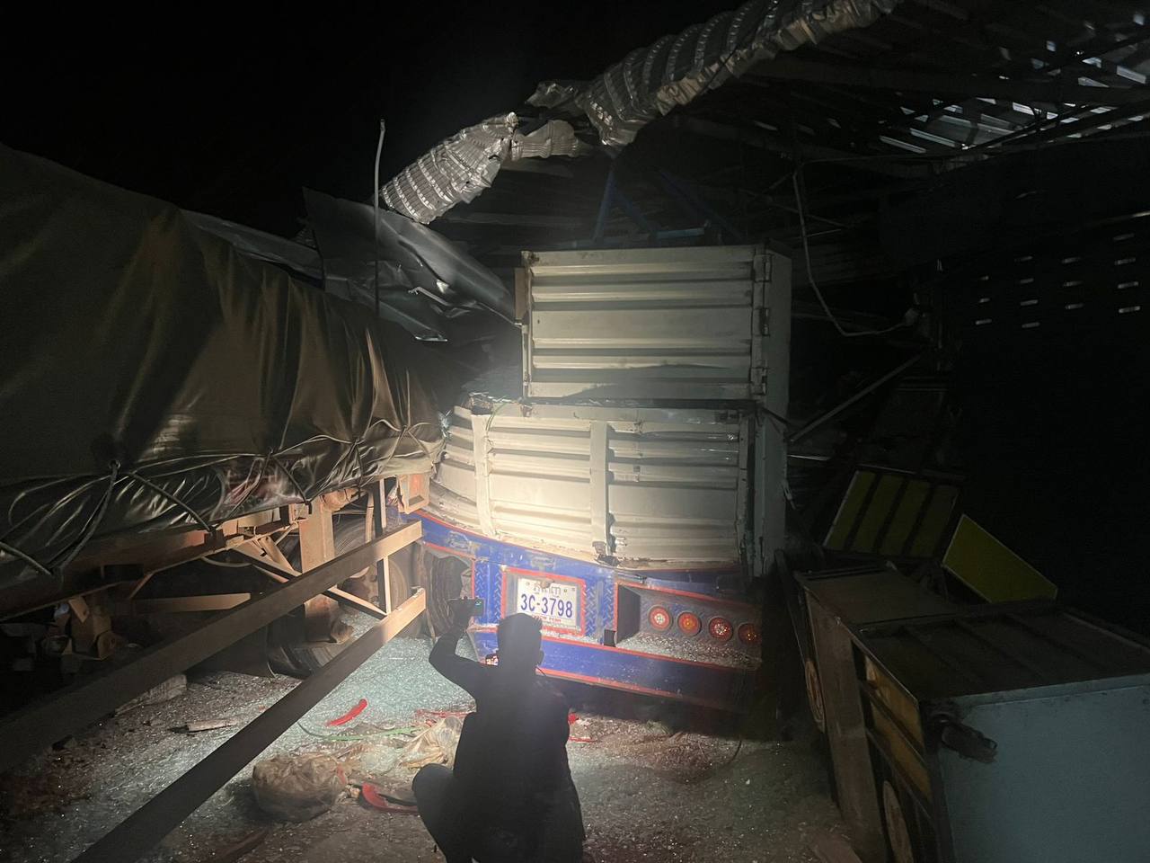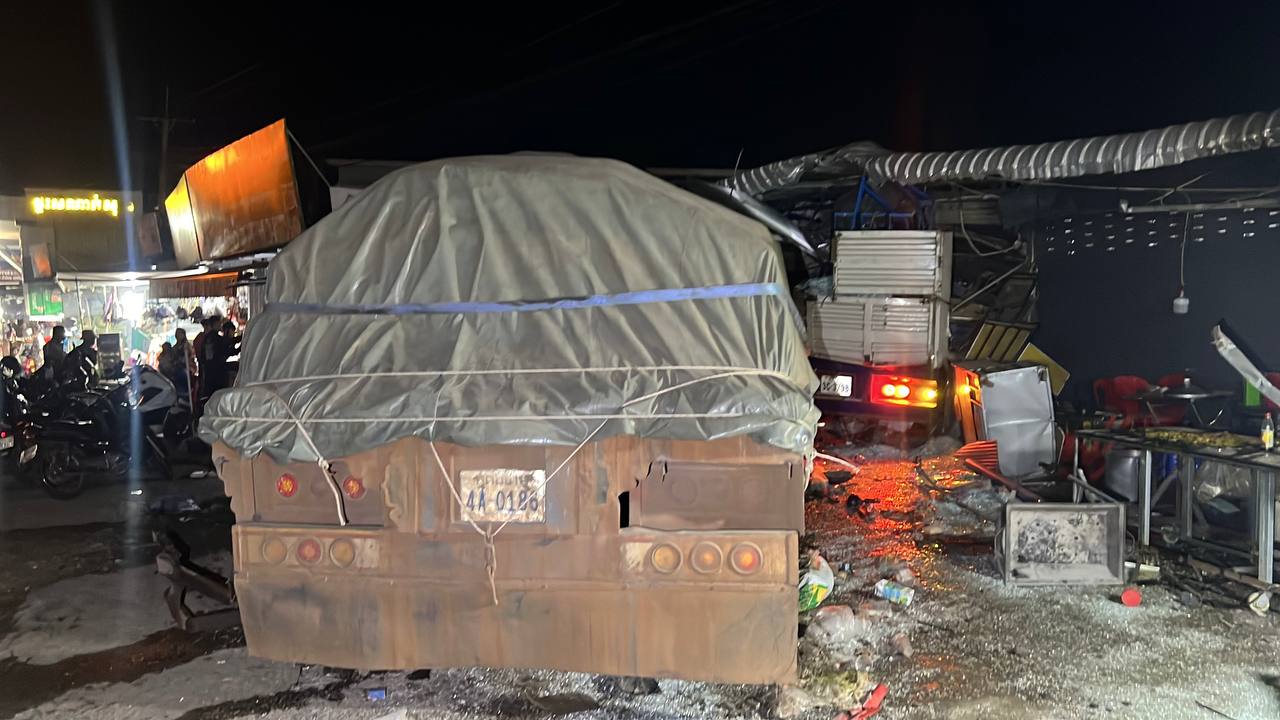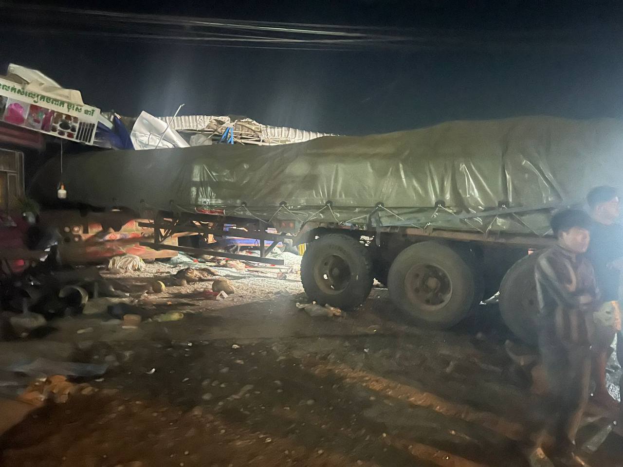 ឡានដឹកទំនិញធុនធំបុ.កផ្ទប់ឡានដឹកកញ្ចក់ រុញបុ.ករះចូលផ្ទះពលរដ្ឋ៤ខ្នង ផ្អើលមហាវិថីឈ្នះឈ្នះ