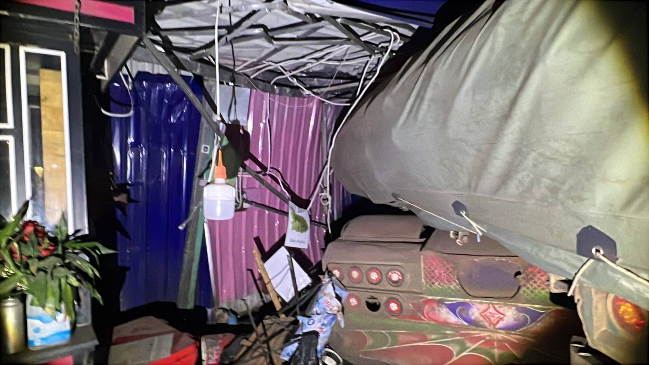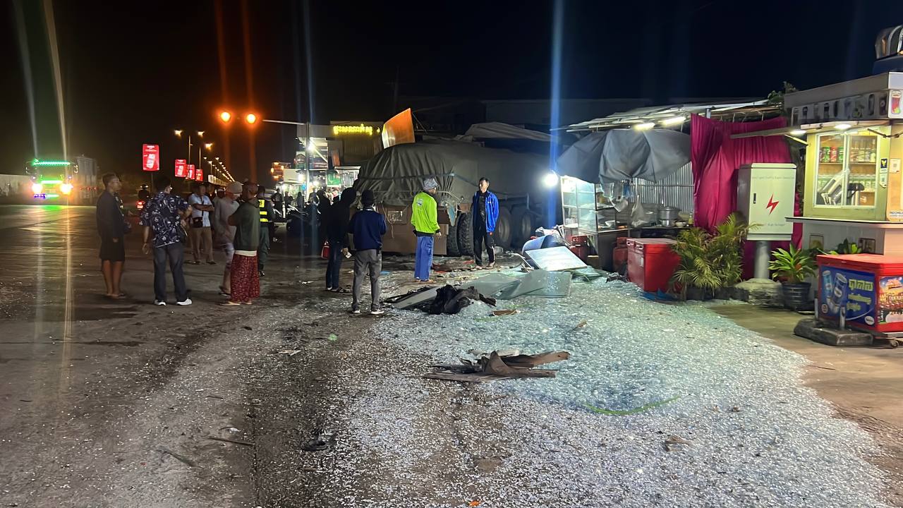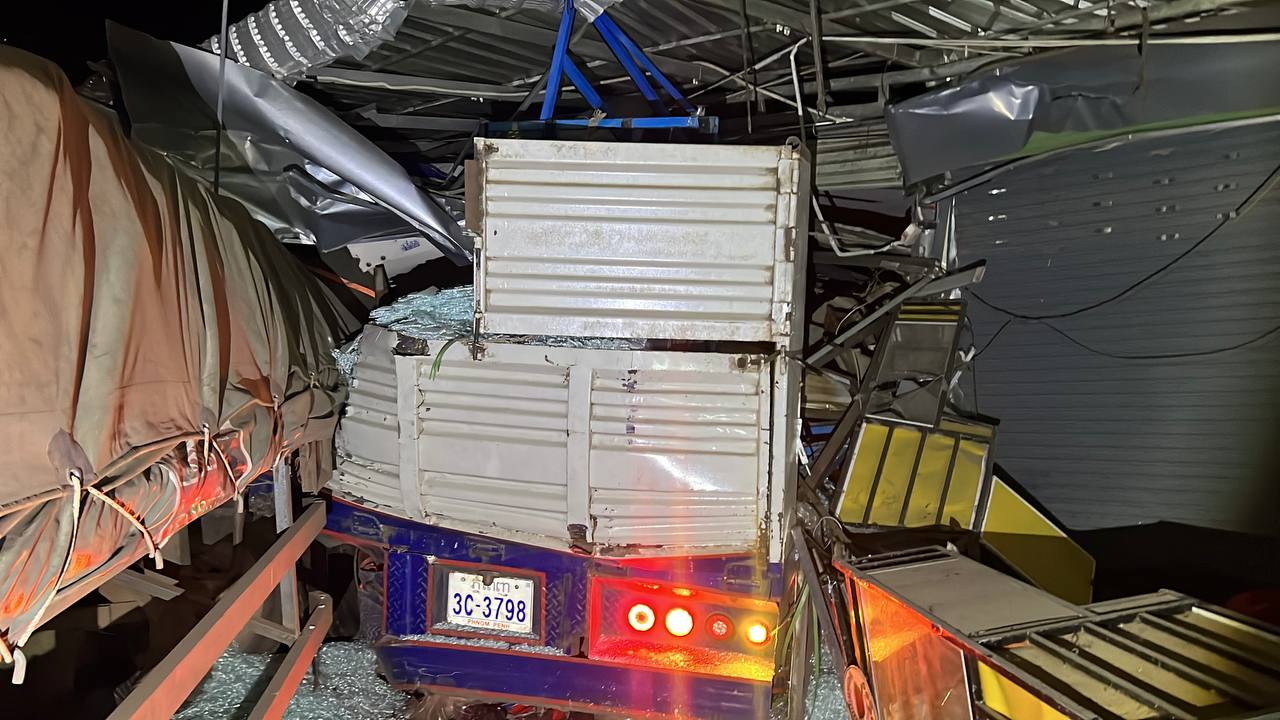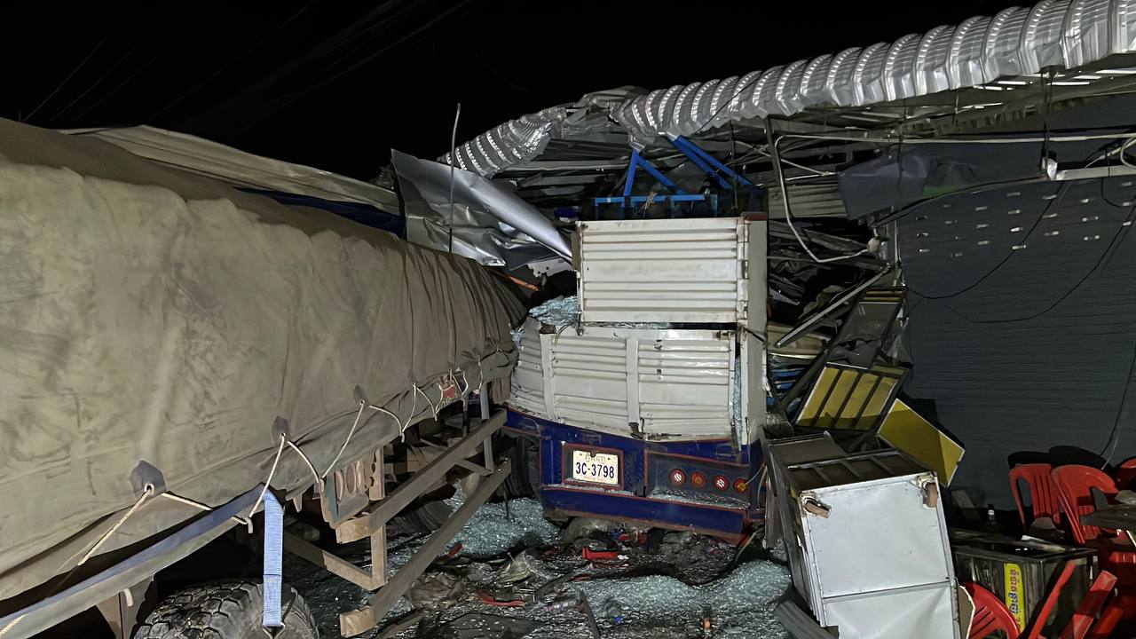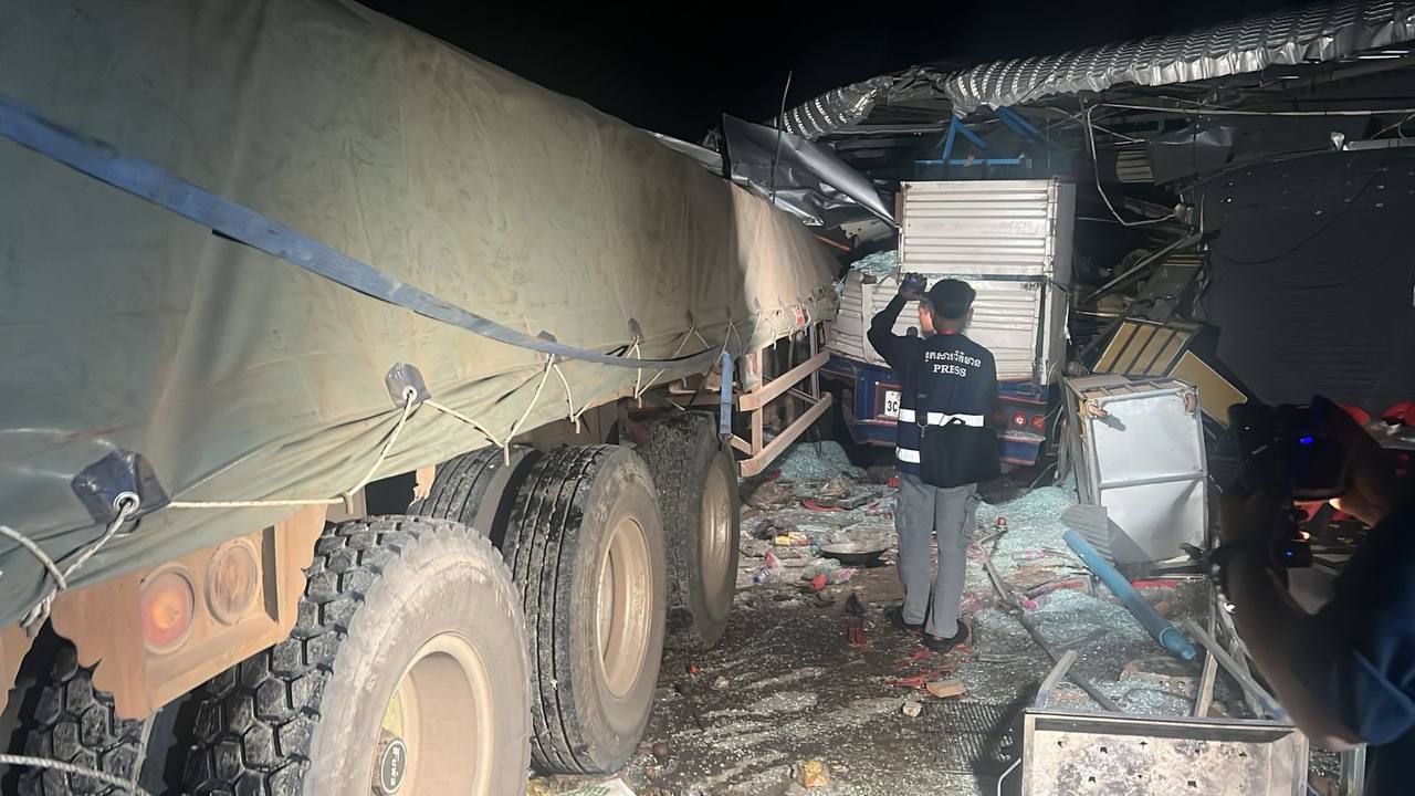 ឡានដឹកទំនិញធុនធំបុ.កផ្ទប់ឡានដឹកកញ្ចក់ រុញបុ.ករះចូលផ្ទះពលរដ្ឋ៤ខ្នង ផ្អើលមហាវិថីឈ្នះឈ្នះ