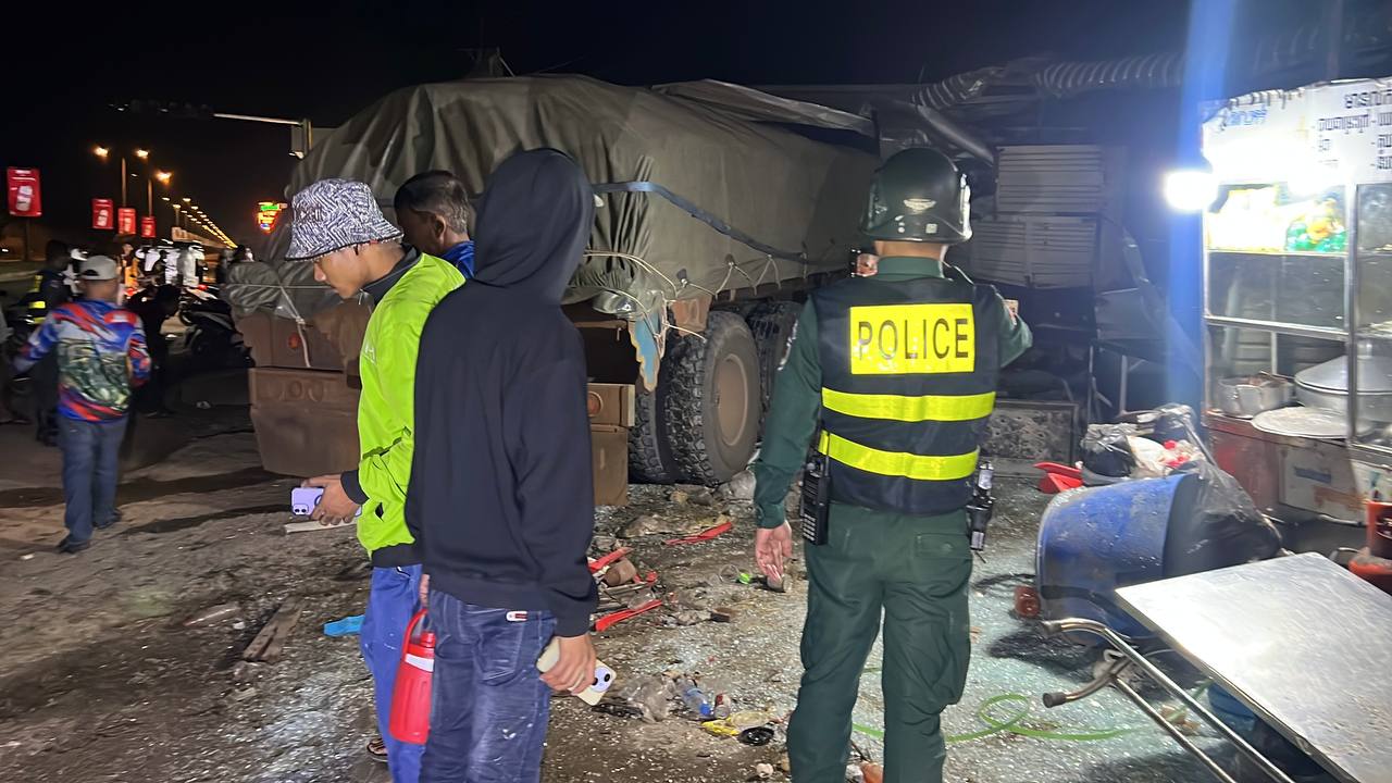 រាជធានីភ្នំពេញ ៖ បុរសម្នាក់សង្ស័យងងុយដេក បានបើករថយន្តធន់ធំសណ្តោងរ៉ឺម៉កដឹកទំនិញមួយគ្រឿង ក្នុងល្បឿនលឿនក៏រេចង្កូតជ្រុលទៅបុកផ្ទុបពីក្រោយរថយន្តដឹកកញ្ចក់ដែលកំពុងឈប់ចតនៅលើចិញ្ចើមផ្លូវ រុញទៅមុខបុករះចូលផ្ទះប្រជាពលរដ្ឋ៤ខ្នងរងការខូចខាតសំភារៈមួយចំនួនធំនិងបណ្តាលអោយបុរសម្នាក់រងរបួសធ្ងន់ធ្ងរ។ ហេតុការណ៍គ្រោះថ្នាក់ចរាចរណ៍ខាងលើនេះបានកើតឡើងកាលពីវេលាម៉ោង ៣ និង ៥…