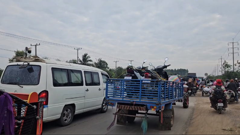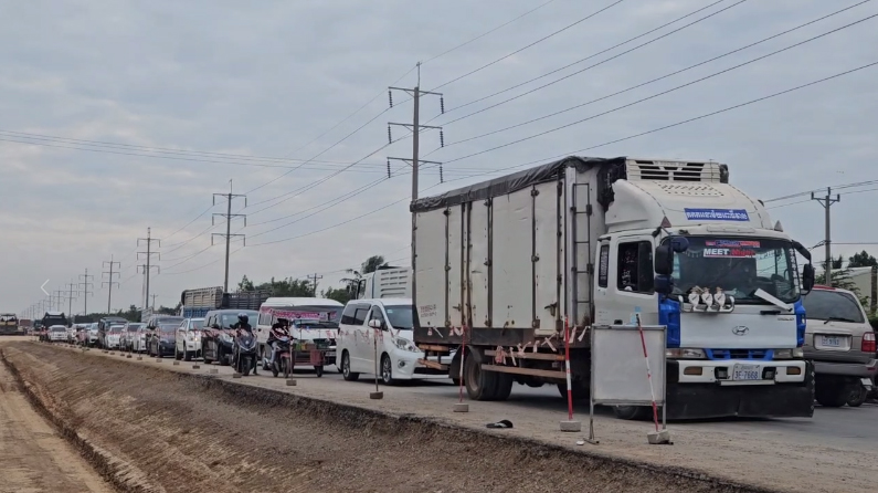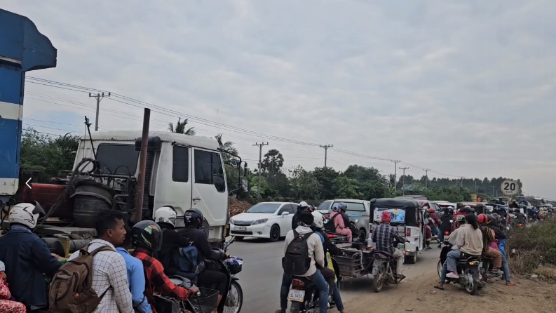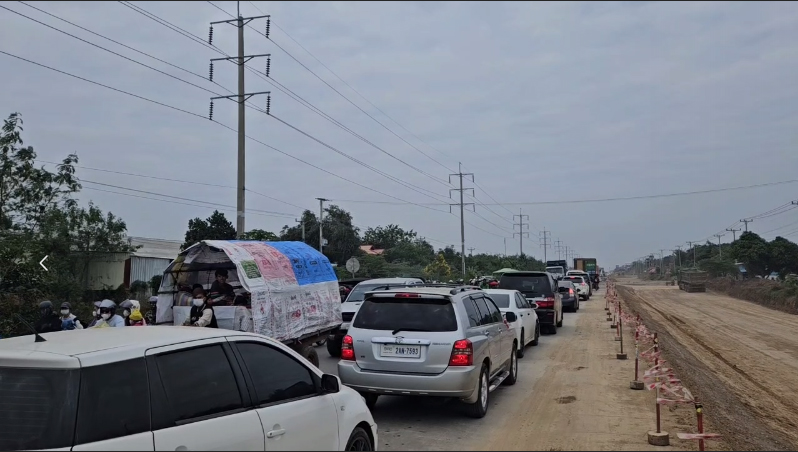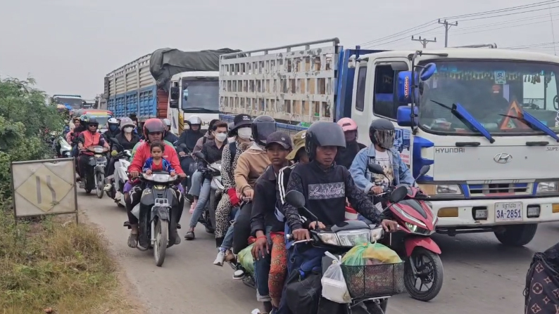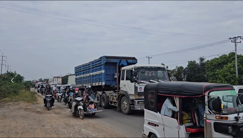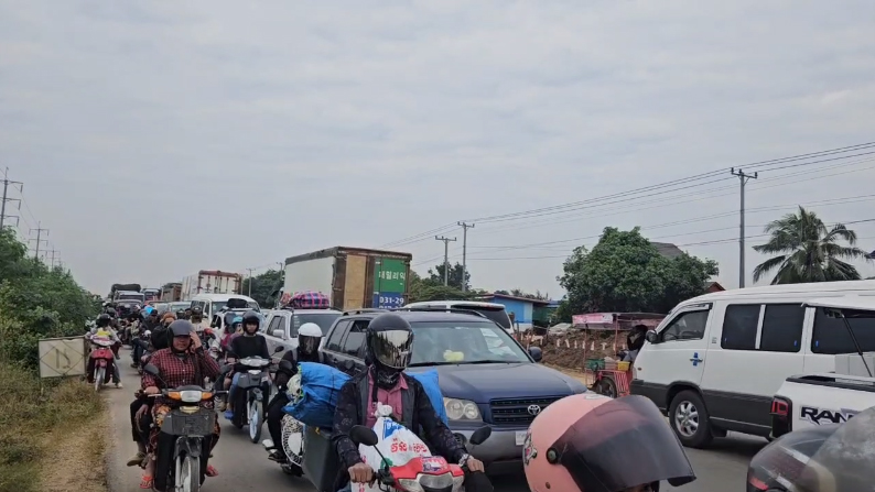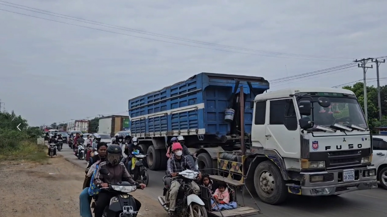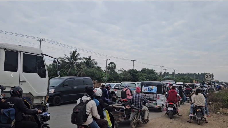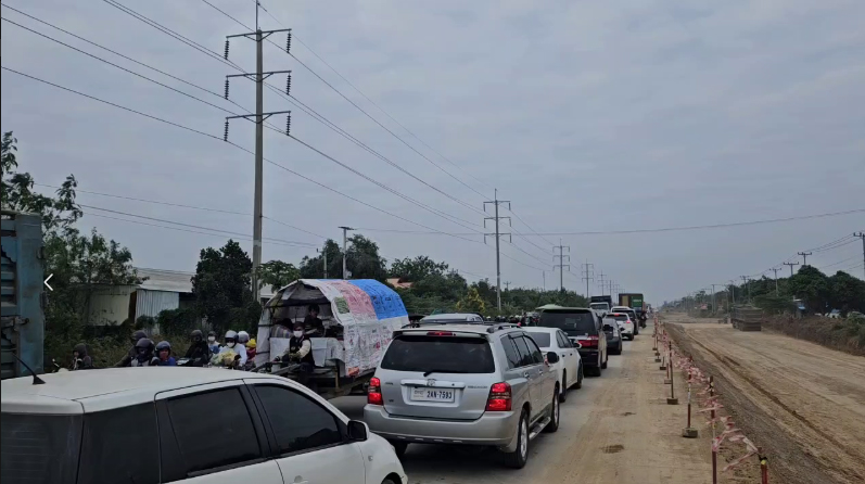 កកស្ទះចរាចរណ៍ផ្លូវជាតិលេខ ៥ ពីក្រុងសិរីសោភ័ណ ទៅក្រុងប៉ោយប៉ែត ខណៈពលរដ្ឋសម្រុកភៀសខ្លួនចេញពីព្រំដែន