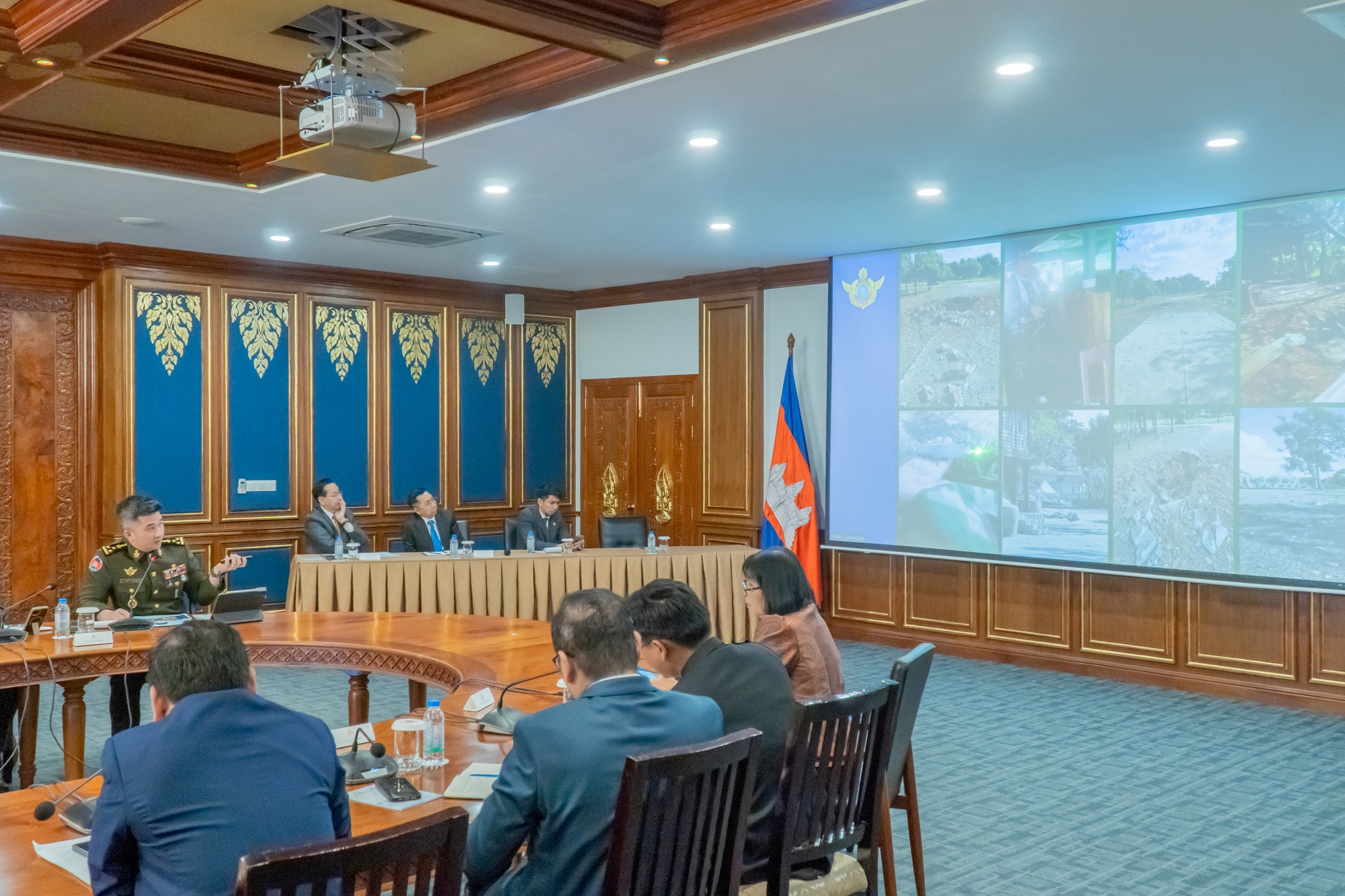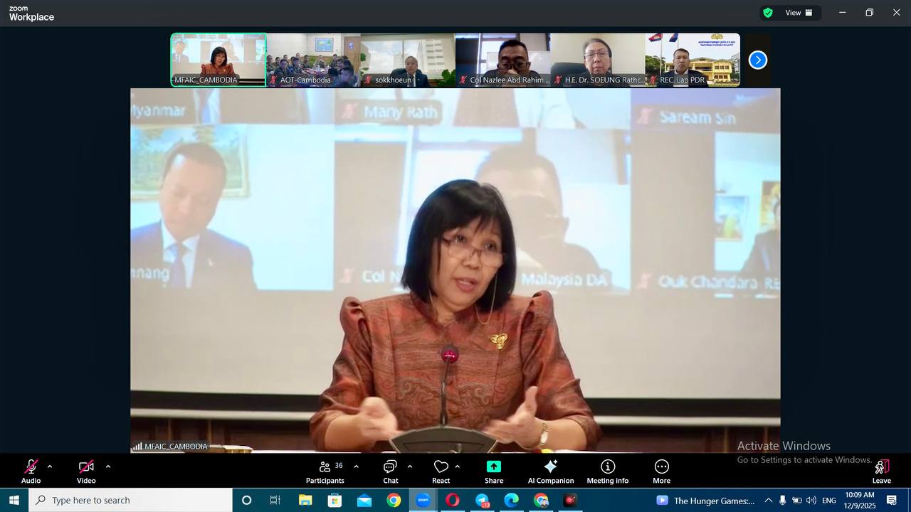 ក្រសួងការពារជាតិ ឱ្យដឹងទៀតថា នៅក្នុងកិច្ចប្រជុំនេះ ឯកឧត្តម ឧត្តមសេនីយ៍ឯក រ៉ាត់ ដារ៉ារ័ត្ន រដ្ឋលេខាធិការ ក្រសួងការពារជាតិ បានចូលរួមធ្វើបទបង្ហាញអំពីស្ថានការណ៍ជាក់ស្តែងនៅតាមបណ្តោយព្រំដែនកម្ពុជា-ថៃ ដែលកំពុងកើតមាន ។ នៅក្នុងការធ្វើបទបង្ហាញជូនអង្គទូតបរទេសប្រចាំព្រះរាជាណាចក្រកម្ពុជា អង្គការអន្តរជាតិ និងតំណាងអង្គការសហប្រជាជាតិ ក្រុមការងារសម្របសម្រួលអ្នកសង្កេតការណ៍របស់ក្រសួងការពារជាតិ នៃព្រះរាជាណាចក្រកម្ពុជា (CLG) បានសម្របសម្រួលជូនក្រុមអ្នកសង្កេតការណ៍អាស៊ាន (AOT) ចូលរួមស្ដាប់បទបង្ហាញខាងលើតាមរយៈប្រព័ន្ធ ZOOM ផងដែរ ។
