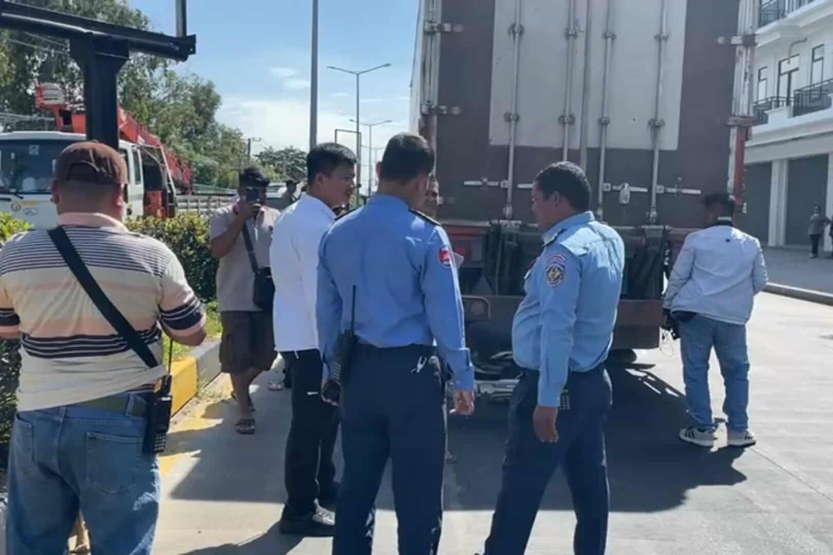 រាជធានីភ្នំពេញ ៖ បុរសម្នាក់ត្រូវបានរថយន្តដឹកទំនិញមួយគ្រឿងកិនចំដងខ្លួន ស្លាប់នៅលើដងផ្លូវខណៈពេលដែលជិះម៉ូតូមួយគ្រឿងបាន ដួលចូលក្រោមរថយន្តនោះ។