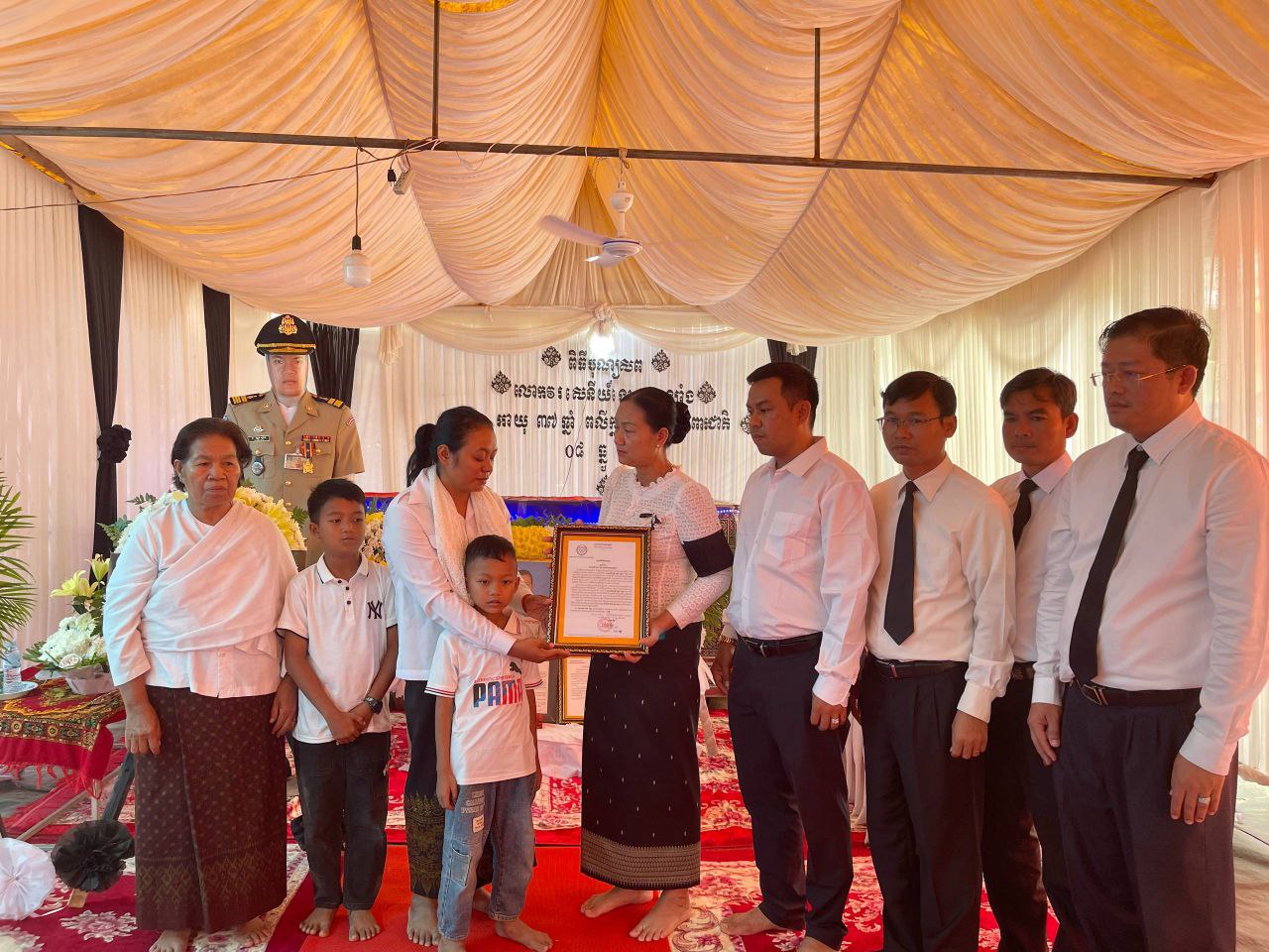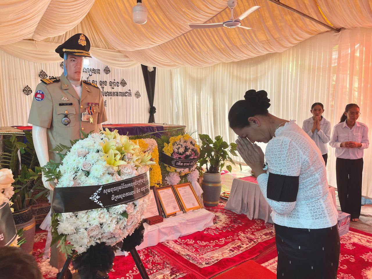 ខេត្តឧត្តរមានជ័យ ៖ លោកជំទាវ ឃ្លោក ប៉េងថុល អនុរដ្ឋលេខាធិការ តំណាងដ៏ខ្ពង់ខ្ពស់ឯកឧត្ដម ហេង សួរ រដ្ឋមន្ត្រីក្រសួងការងារ និងបណ្ដុះបណ្ដាលវិជ្ជាជីវៈ នាព្រឹកថ្ងៃទី១០ ខែធ្នូ ឆ្នាំ២០២៥នេះ បានអញ្ជើញចូលរួមគោរពវិញ្ញាណក្ខន្ធសព លោកវរសេនីយ៍ទោ ឡុងឡាំង វីរនគរបាលជាតិ ដែលពលីជីវិតដោយសារការវាយប្រហាររបស់យោធាថៃ ក្នុងពេលឈរជើងការពារទឹកដី នៅទិសថ្មដូន ខេត្តឧត្តរមានជ័យ ។