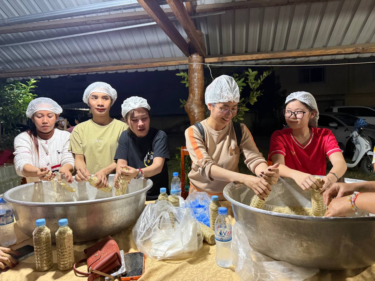 លោកស្រី ហួត ផាវី ជាអាជីវករម្នាក់បានឲ្យដឹងថា ការធ្វើអំបុកបាក់យ៉ុងជូនកងទ័ពនេះ ផ្ដើមឡើងដោយប្អូនប្រុសឈ្មោះ វ៉ាន់ ហ៊ាង និងប្អូនប្រុសឈ្មោះ អ៊ុន ទាហេង ជាអាជីវករលក់ក្រណាត់ លក់អង្ករ និងលក់គ្រឿងសំណង់ រួមជាមួយអាជីវករផ្សារពោធិ៍សាត់មួយចំនួនទៀត ដែលមានស្មារតីនិងទឹកចិត្តស្រលាញ់កងទ័ព។ អំបុកទាំងនេះធ្វើនៅផ្ទះចុងភៅអ៊ីណាគ្រី ស្ថិតក្នុងភូមិពាលញែក១ សង្កាត់ផ្ទះព្រៃ ក្រុងពោធិ៍សាត់ ដែលមានវត្ថុធាតុដើម អំបុកស្រូវថ្មីចំនួន១៤៥គក្រ និងសាច់មាន់ចំនួន១០គក្រ។ ក្រុមអាជីវករបាននាំគ្នាធ្វើដោយក្ដីរីករាយ ក្នុងទឹកចិត្តផុសចេញពីបេះដូងពិតៗ ហើយអំបុកបានលីងជាមួយសាច់ផាត់(សាច់មាន់)យ៉ាងស្រួយខ្ញោក និងមានរសជាតិឈ្ងុយឆ្ងាញ់ រួចហើយបានច្រកក្នុងដបទឹកសុទ្ធ សរុបបានចំនួនមួយពាន់ដបផងដែរ។