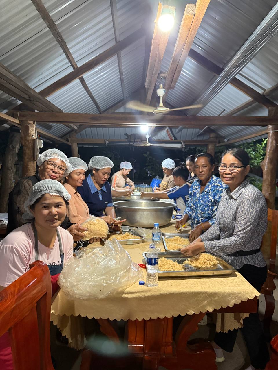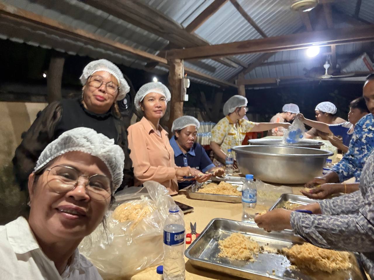 ខេត្តពោធិ៍សាត់៖ ក្រៅពីជួយឧបត្ថម្ភជាស្បៀង គ្រឿងឧបភោគបរិភោគ សម្ភារៈប្រើប្រាស់ និងថវិកា ដល់រដ្ឋបាលសាលាខេត្ត សម្រាប់ជួយដល់វីរៈកងទ័ពជួរមុខនិងជនភៀសសឹក ឥឡូវនេះមានក្រុមអាជីវករមួយក្រុម បាននាំគ្នាធ្វើអំបុកបាក់យ៉ុង សម្រាប់ជួយដល់កងទ័ពបន្ថែមទៀត ព្រោះវាងាយស្រួលសម្រាប់កងទ័ព ក្នុងការបុកព្រៃ។