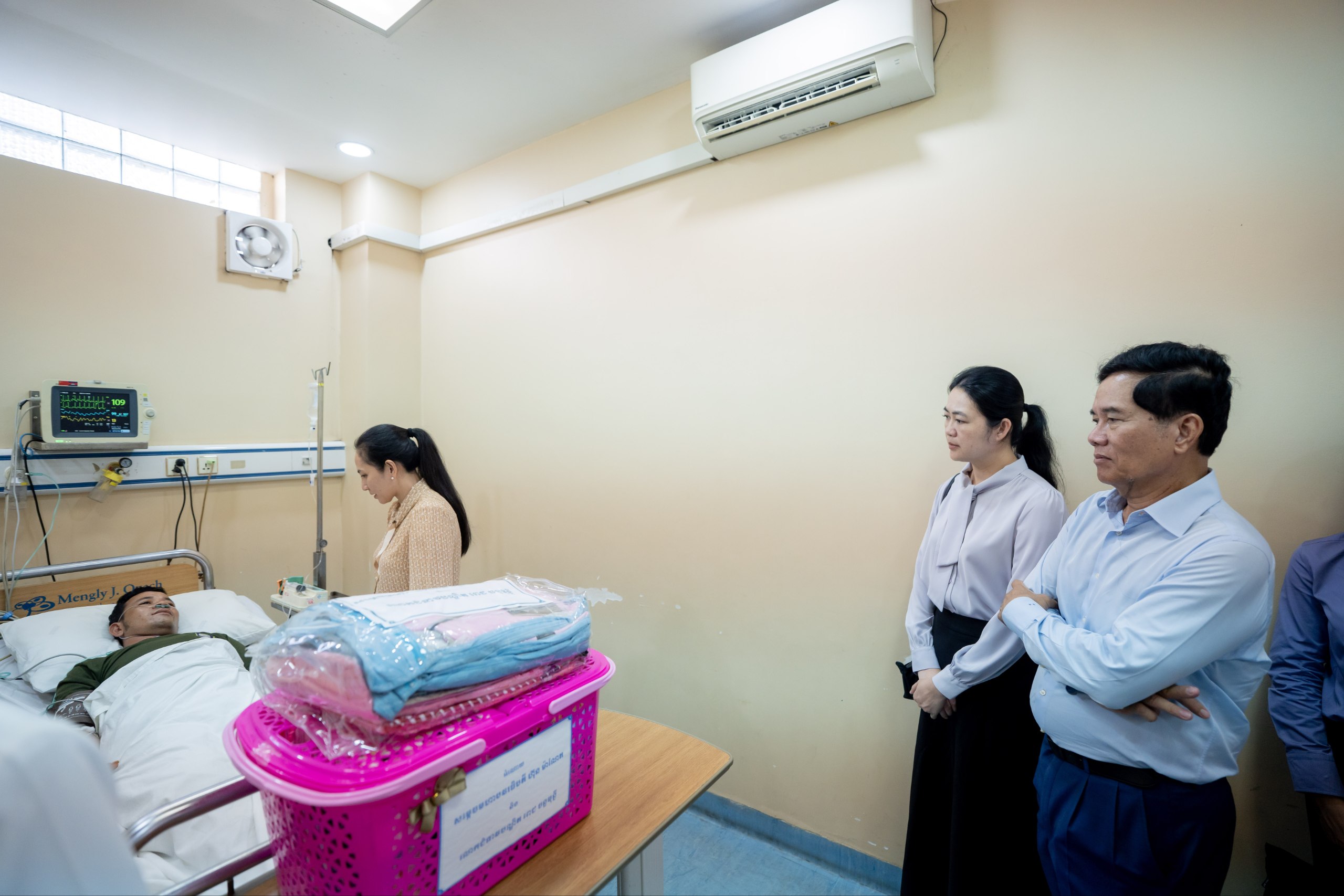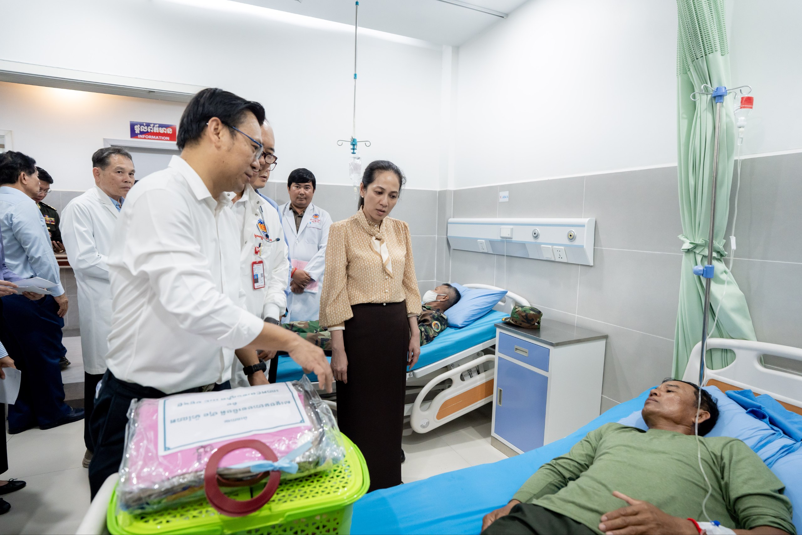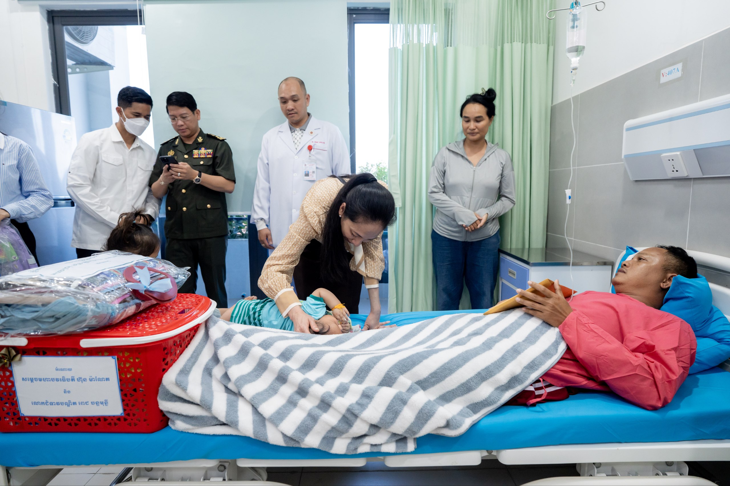 លោកជំទាវបណ្ឌិត ពេជ ចន្ទមុន្នី ហ៊ុនម៉ាណែត អញ្ជើញសួរសុខទក្ខយោធិន និងប្រជាពលរដ្ឋ កំពុងសម្រាកព្យាបាលនៅតាមមន្ទីរពេទ្យនានានៅភ្នំពេញ