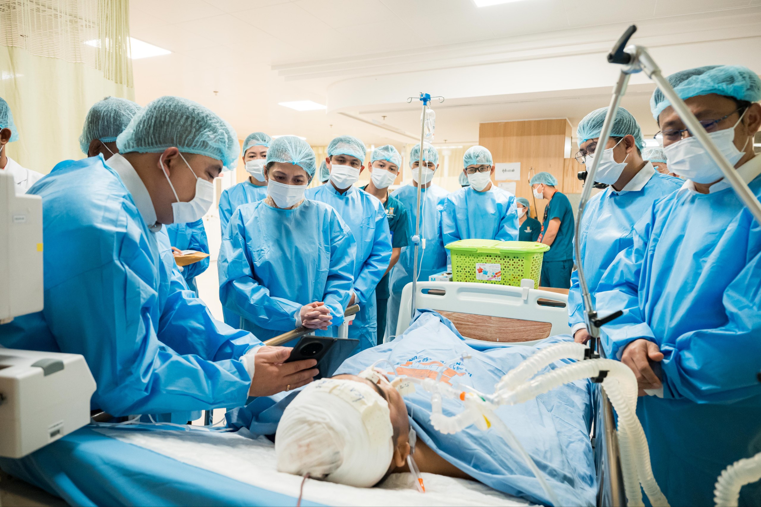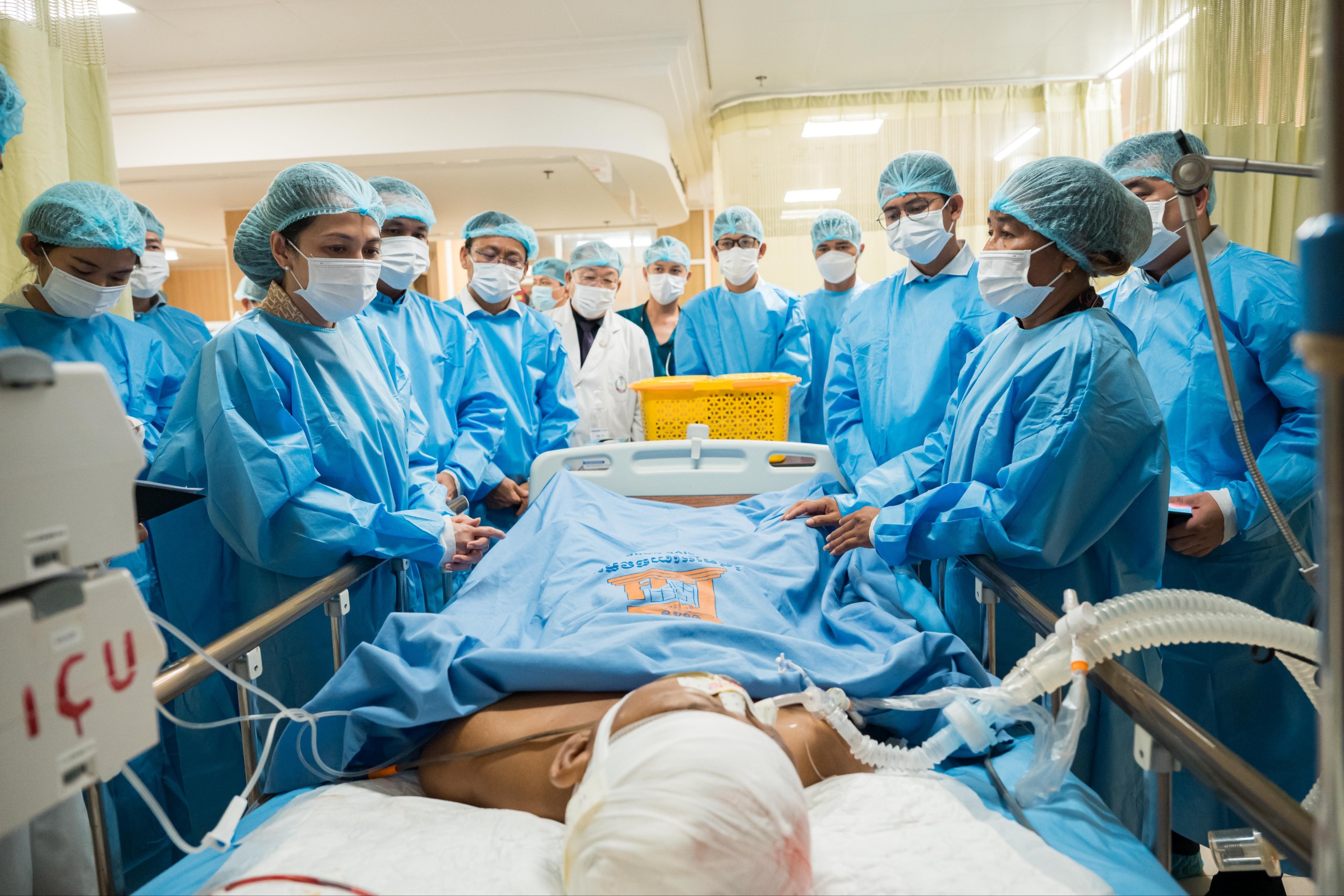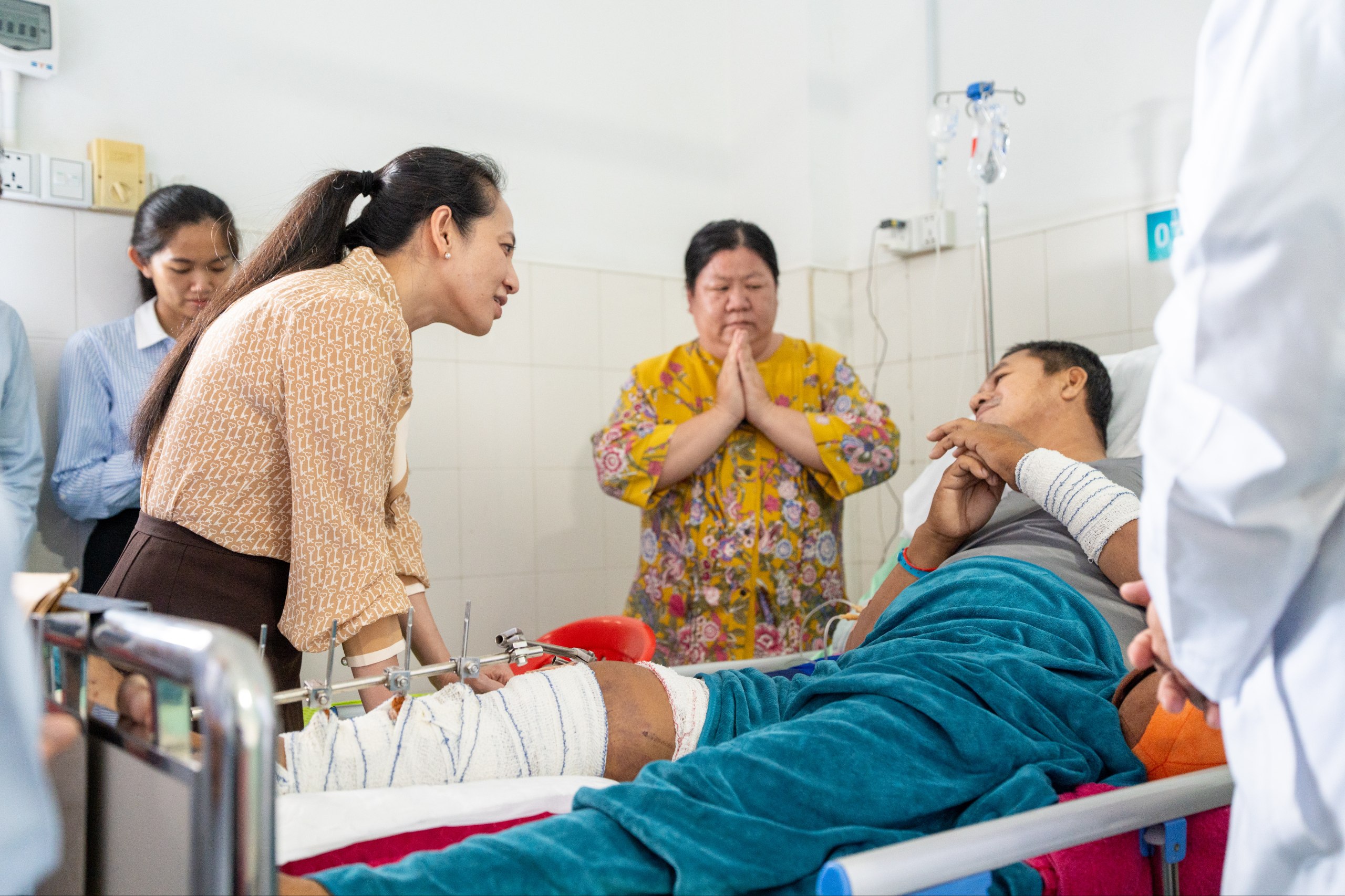 លោកជំទាវបណ្ឌិត ពេជ ចន្ទមុន្នី ហ៊ុនម៉ាណែត អញ្ជើញសួរសុខទក្ខយោធិន និងប្រជាពលរដ្ឋ កំពុងសម្រាកព្យាបាលនៅតាមមន្ទីរពេទ្យនានានៅភ្នំពេញ