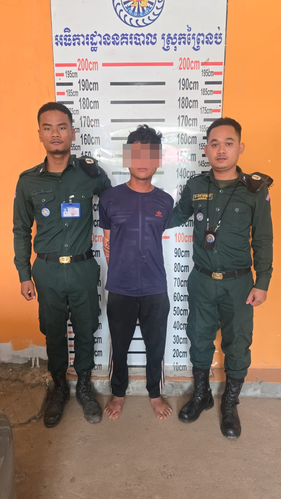 ក្រោយពីទទួលព័ត៌មានខាងលើ កម្លាំងជំនាញនៃអធិការដ្ឋាននគរ បាលស្រុកព្រៃនប់ បានសហ ការជាមួយកម្លាំងប៉ុស្តិ៍នគរ បាលរដ្ឋបាលឃុំជើងគោ និងប៉ុស្តិ៍តានៃ ចុះធ្វើរួចឃាត់ខ្លួនជនសង្ស័យខាងលើ បាន ភ្លាមៗតែម្ដង ។