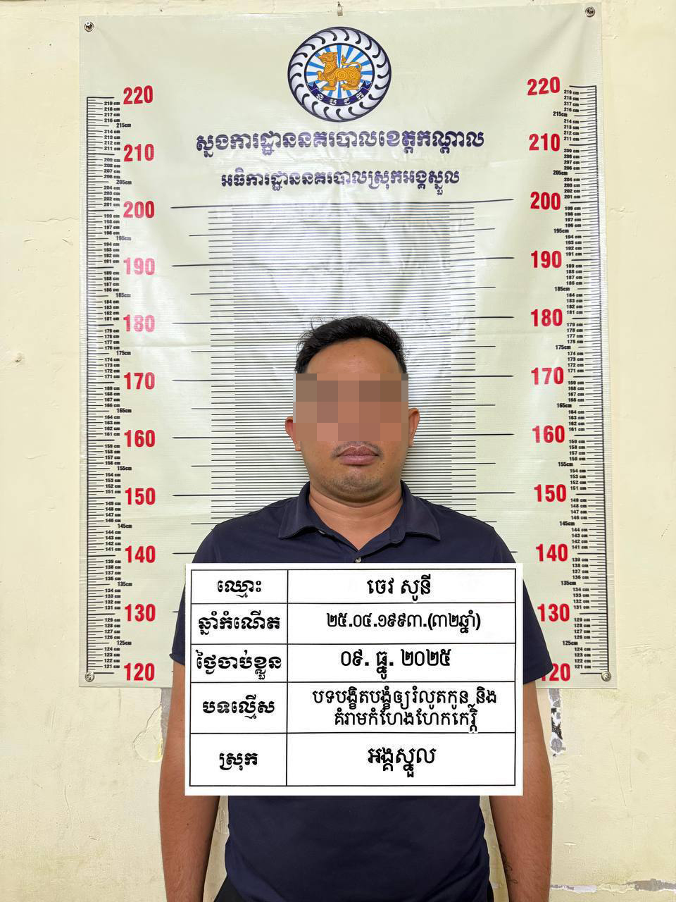 ករណីនេះ បានកើតឡើងនៅថ្ងៃទី១៣ ខែតុលា ឆ្នាំ២០២៥ វេលាម៉ោង០៩និង២៥នាទីព្រឹក ស្ថិតនៅភូមិទឹកជា ឃុំពើក ស្រុកអង្គស្នួល ខេត្តកណ្ដាល និងត្រូវចាប់ខ្លួនបាននៅថ្ងៃទី៩ ខែធ្នូ ឆ្នាំ២០២៥ ។