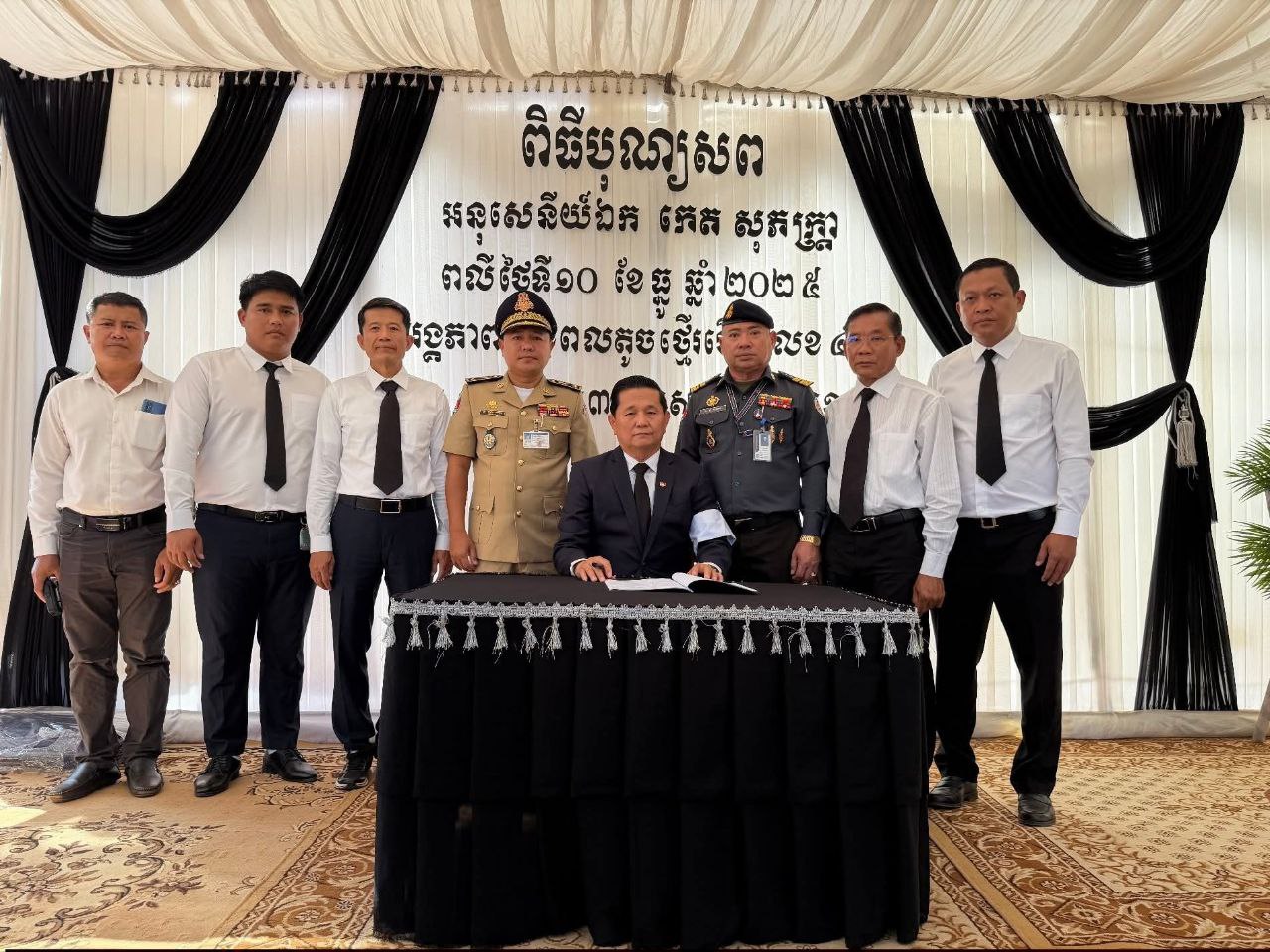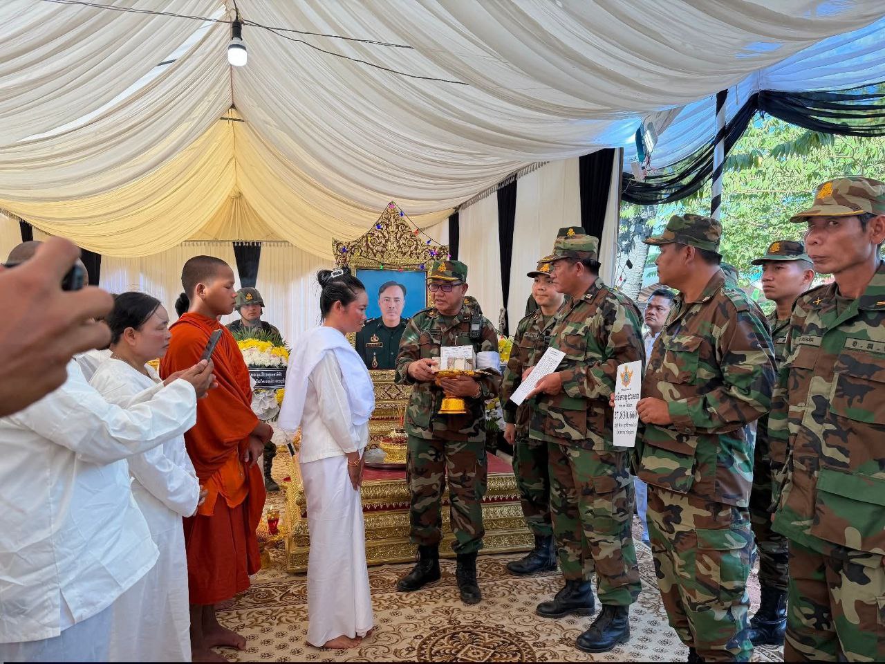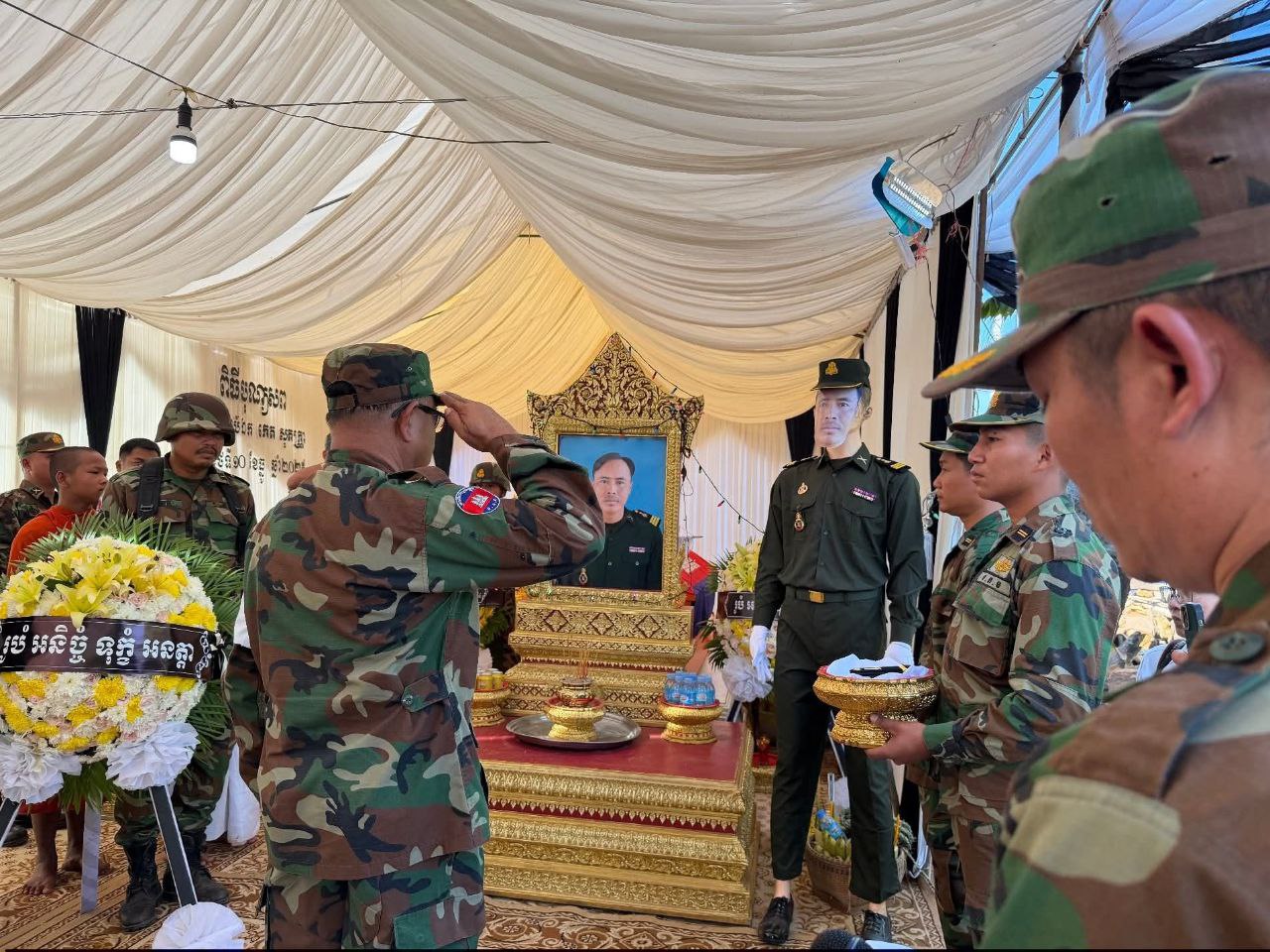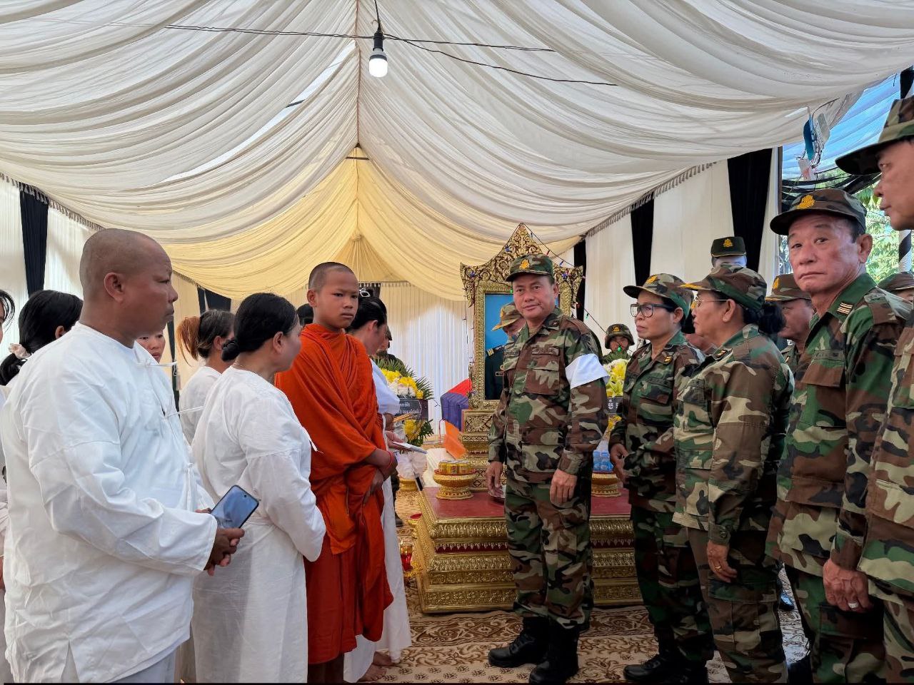 ខេត្តសៀមរាប ៖ នាព្រឹក ថ្ងៃទី១២ ខែធ្នូ ឆ្នាំ ២០២៥ លោក លី សារី អភិបាលរងខេត្ត តំណាងដ៏ខ្ពង់ខ្ពស់ឯកឧត្តម ប្រាក់ សោភ័ណ អភិបាល នៃគណៈអភិបាលខេត្ត បានដឹកនាំប្រតិភូខេត្ត ចូលរួមគោរពវិញ្ញាណក្ខន្ធ លោកអនុសេនីយ៍ទោ កេត សុភត្ត្រា នាយក្រុម៣ អ.ត.២ វ.ត.៤២២ បម្រើការនៅកងពលតូចថ្មើរជើងលេខ៤២ បានទទួលមរណភាព នាថ្ងៃ ទី១០ ខែធ្នូ ឆ្នាំ២០២៥ ក្នុងសមរភូមិប្រយុទ្ធរវាងកងទ័ពកម្ពុជា-ថៃ នៅតំបន់ទិសប្រាសាទតាមាន់ ស្រុកបន្ទាយអំពិល ខេត្តឧត្តរមានជ័យ។