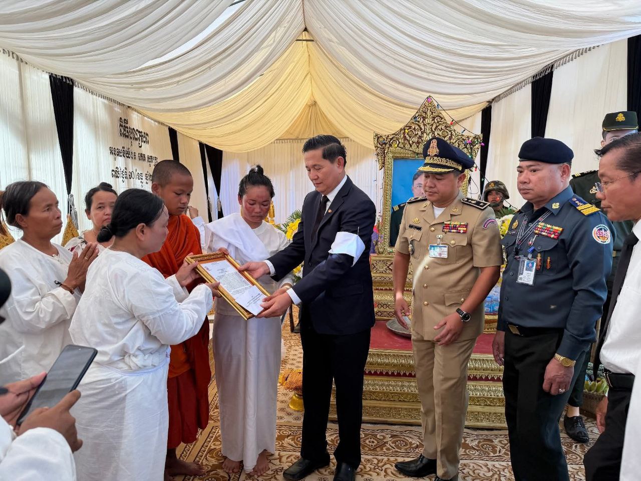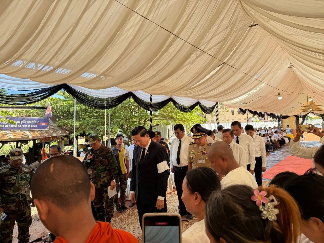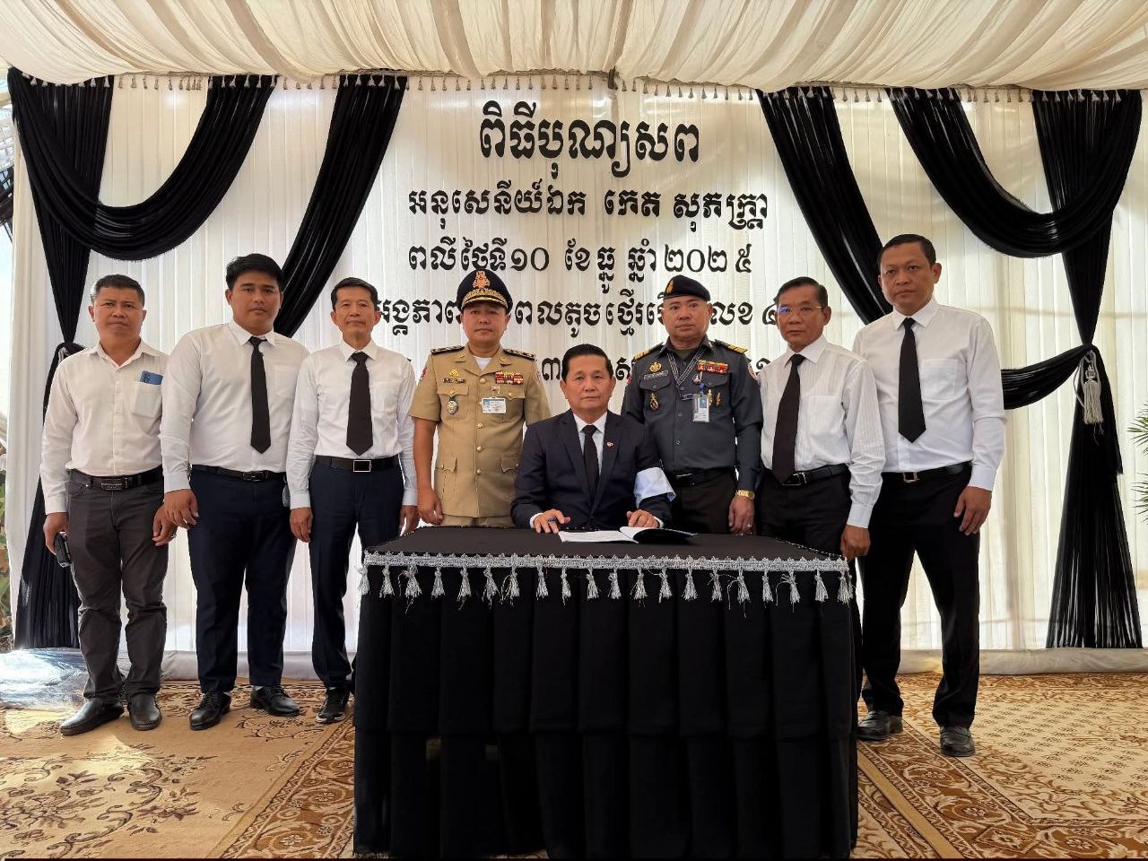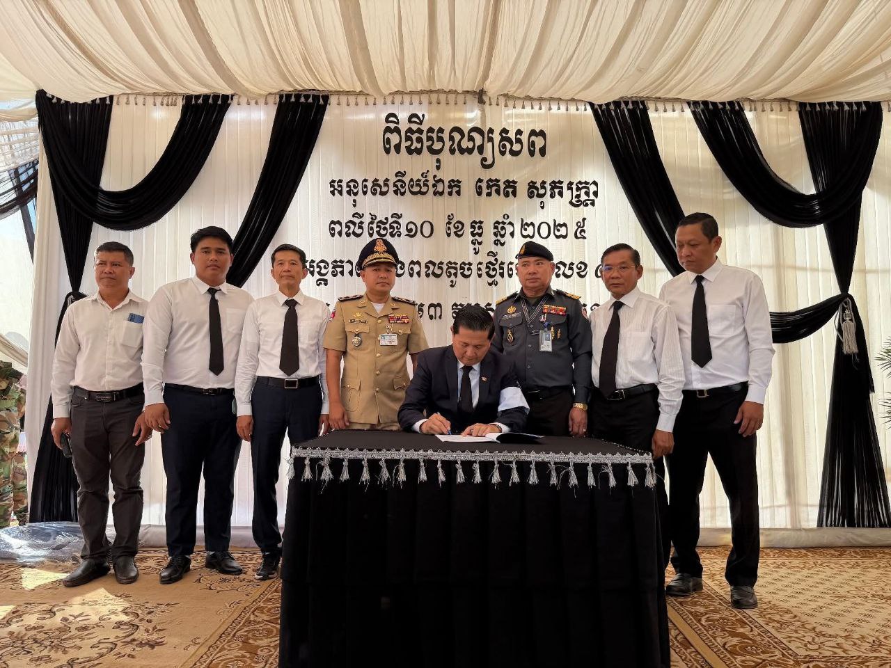 ខេត្តសៀមរាប ៖ នាព្រឹក ថ្ងៃទី១២ ខែធ្នូ ឆ្នាំ ២០២៥ លោក លី សារី អភិបាលរងខេត្ត តំណាងដ៏ខ្ពង់ខ្ពស់ឯកឧត្តម ប្រាក់ សោភ័ណ អភិបាល នៃគណៈអភិបាលខេត្ត បានដឹកនាំប្រតិភូខេត្ត ចូលរួមគោរពវិញ្ញាណក្ខន្ធ លោកអនុសេនីយ៍ទោ កេត សុភត្ត្រា នាយក្រុម៣ អ.ត.២ វ.ត.៤២២ បម្រើការនៅកងពលតូចថ្មើរជើងលេខ៤២ បានទទួលមរណភាព នាថ្ងៃ ទី១០ ខែធ្នូ ឆ្នាំ២០២៥ ក្នុងសមរភូមិប្រយុទ្ធរវាងកងទ័ពកម្ពុជា-ថៃ នៅតំបន់ទិសប្រាសាទតាមាន់ ស្រុកបន្ទាយអំពិល ខេត្តឧត្តរមានជ័យ។