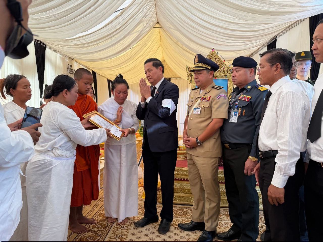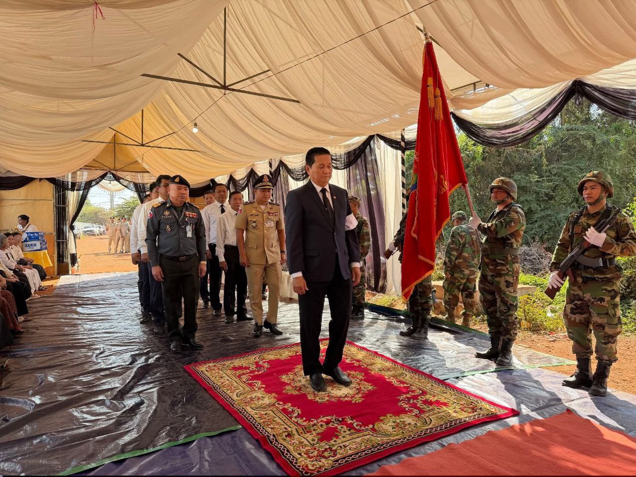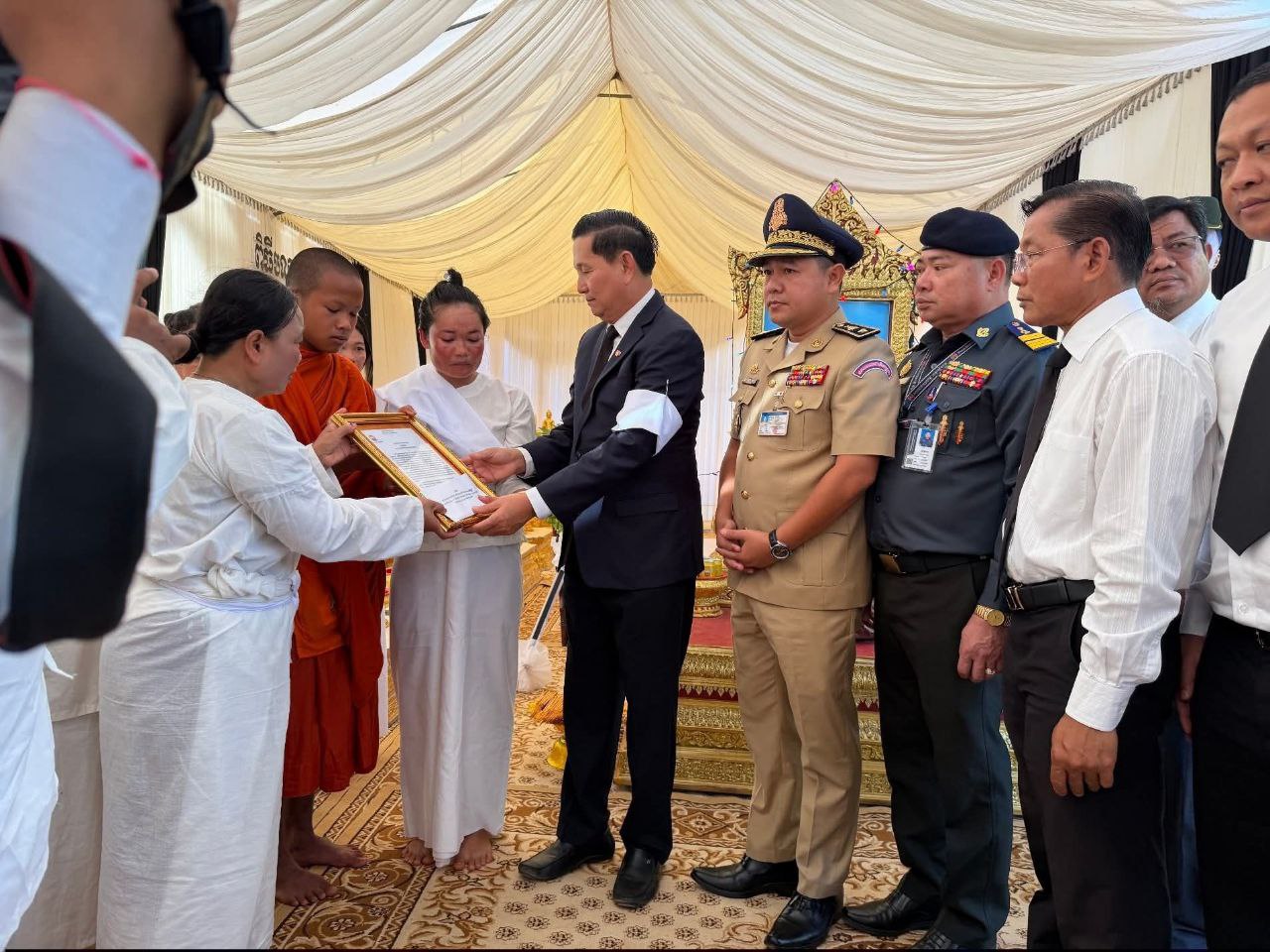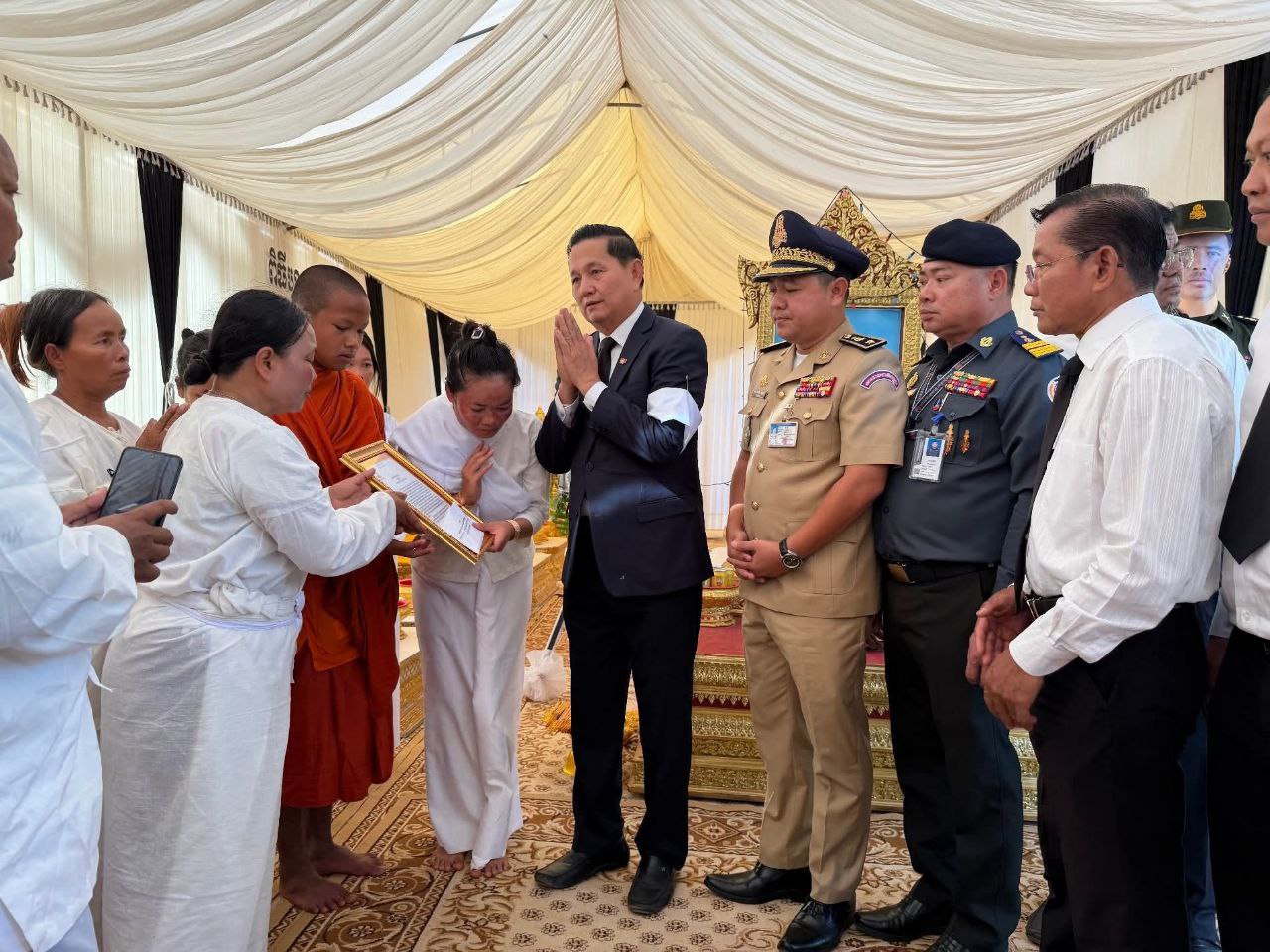 ខេត្តសៀមរាប ៖ នាព្រឹក ថ្ងៃទី១២ ខែធ្នូ ឆ្នាំ ២០២៥ លោក លី សារី អភិបាលរងខេត្ត តំណាងដ៏ខ្ពង់ខ្ពស់ឯកឧត្តម ប្រាក់ សោភ័ណ អភិបាល នៃគណៈអភិបាលខេត្ត បានដឹកនាំប្រតិភូខេត្ត ចូលរួមគោរពវិញ្ញាណក្ខន្ធ លោកអនុសេនីយ៍ទោ កេត សុភត្ត្រា នាយក្រុម៣ អ.ត.២ វ.ត.៤២២ បម្រើការនៅកងពលតូចថ្មើរជើងលេខ៤២ បានទទួលមរណភាព នាថ្ងៃ ទី១០ ខែធ្នូ ឆ្នាំ២០២៥ ក្នុងសមរភូមិប្រយុទ្ធរវាងកងទ័ពកម្ពុជា-ថៃ នៅតំបន់ទិសប្រាសាទតាមាន់ ស្រុកបន្ទាយអំពិល ខេត្តឧត្តរមានជ័យ។