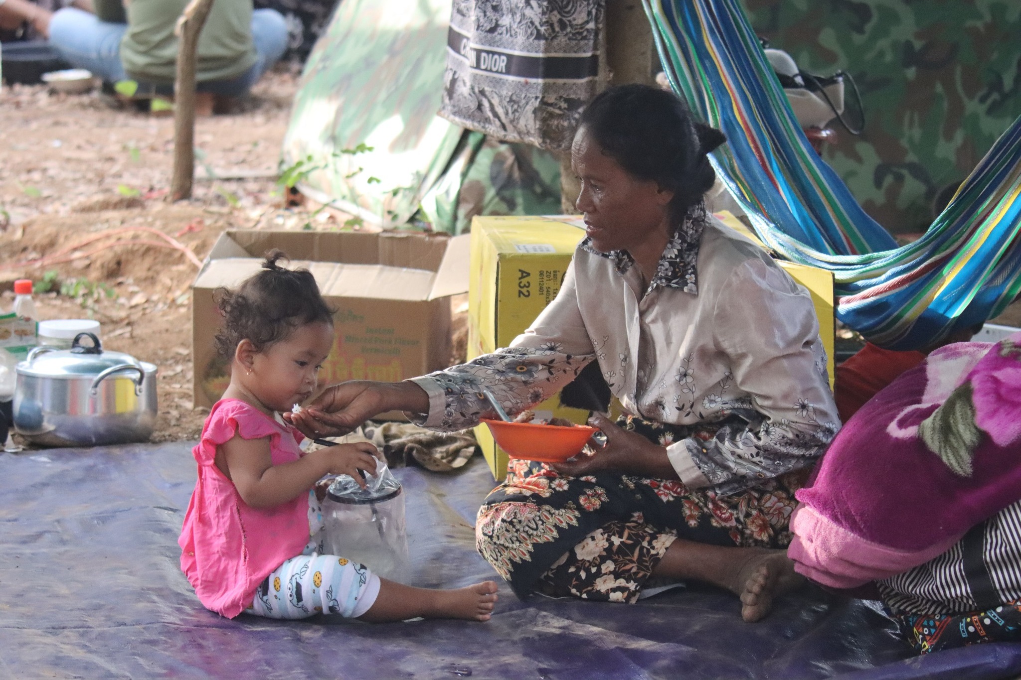 អ្នកធ្វើស្រែចម្ការនៅភូមិកំណើតរូបនេះ បានបន្តថា ៖ «កាលពីដំបូងរត់មកមិនមានអ្វីជិះនោះទេ មកសុំគេជិះតែគេមិនឱ្យ ទម្រាំគេព្រមឱ្យជិះជាមួយមក ត្រូវចាំ ២ថ្ងៃ បានមកទីនេះ ។ រត់មកនេះមានខោអាវ ម្នាក់តែ ២កំប្លេរទេ ចឹងត្រូវផ្លាស់ប្តូរ និងបោករាល់ថ្ងៃ ។ កាលមកដល់ដំបូងយើងអត់មានអ្វីនោះទេ បន្ទាប់មកទទួលបានតង់គេង និងអាហារ» ។ បងស្រី ចិន្តា ក៏បានសុំណូមពរផងដែរថា ស្នើរសុំទឹកដោះគោកូន ព្រោះកូនៗខ្វះច្រើន សម្រាប់មនុស្សធំយើងញុំាអីក៏បាន ហើយពួកយើងក៏នៅខ្វះខាងភួយ និងខោអាវផងដែរ ។