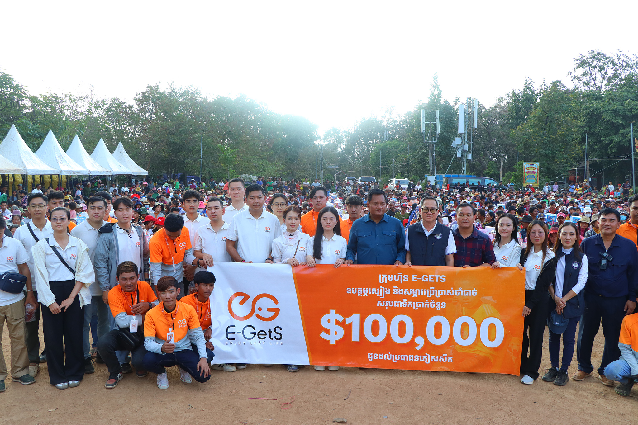 ខេត្តឧត្ដរមានជ័យ ៖ ពលរដ្ឋភៀសសឹកកម្ពុជា ១០០០គ្រួសារ ដែលកំពុងស្នាក់នៅជំរំ «បាត់ថ្កៅ» ស្ថិតក្នុងវត្តបាត់ថ្កៅ ឃុំចុងកាល់ ស្រុកចុងកាល់ ខេត្តឧត្តរមានជ័យ ទទួលបានតង់ សម្ភារប្រើប្រាស់ គ្រឿងឧបភោគបរិភោគ ព្រមទាំងថវិកាមួយចំនួន ១០០,០០០ដុល្លារ ពីក្រុមហ៊ុន E-GetS នៅថ្ងៃទី១២ ខែធ្នូ ឆ្នាំ ២០២៥ នេះ ។