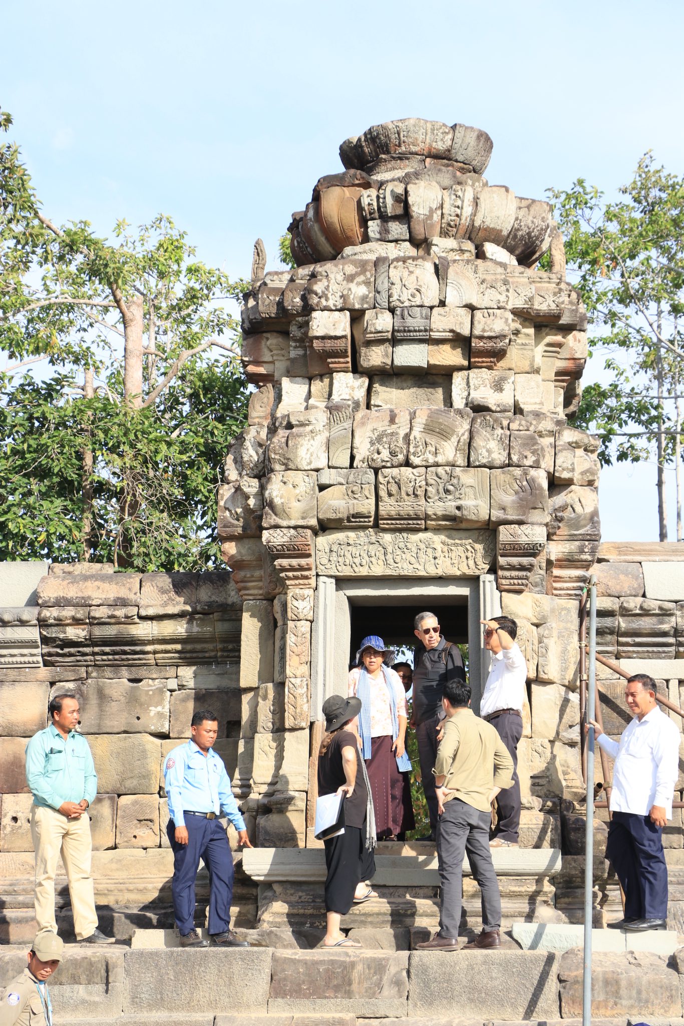 ខេត្តសៀមរាប ៖ នៅថ្ងៃទី១៣ ខែធ្នូ ឆ្នាំ២០២៥ លោកជំទាវបណ្ឌិតសភាចារ្យ ភឿង សកុណា រដ្ឋមន្ត្រីក្រសួងវប្បធម៌ និងវិចិត្រសិល្បៈ និងជាប្រធានក្រុមប្រឹក្សាភិបាលអាជ្ញាធរជាតិអប្សរា អមដំណើរដោយថ្នាក់ដឹកនាំ និងអ្នកជំនាញនៃអាជ្ញាធរជាតិអប្សរា បានអញ្ជើញចុះពិនិត្យវឌ្ឍនភាពការងារ និងផ្តល់អនុសាសន៍ណែនាំក្នុងការអនុវត្តការងារជាក់ស្តែង នៅប្រាសាទមេបុណ្យខាងលិច។