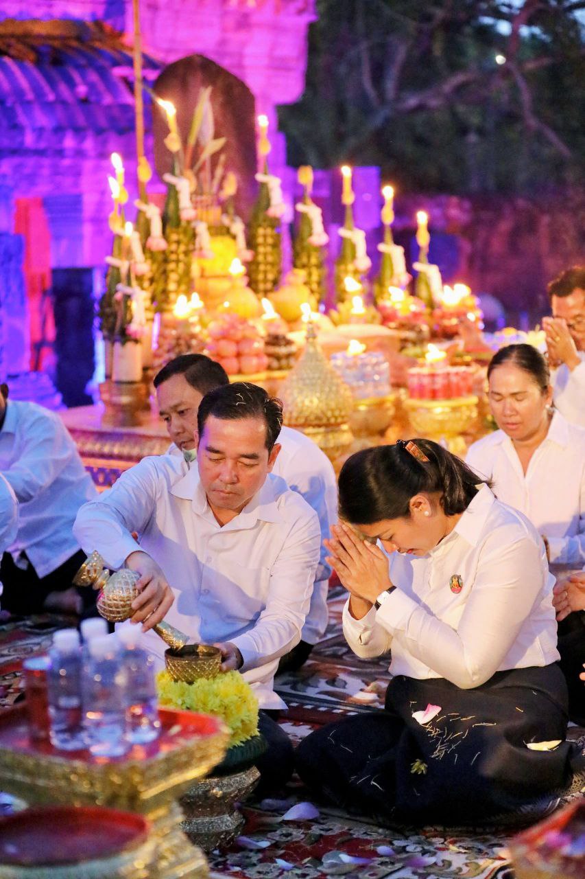 ជាក់ស្ដែង ឯកឧត្តម អ៊ុន ចាន់ដា អភិបាលខេត្តកំពង់ចាមនិងលោកជំទាវ ញ៉ូង ចរិយា ព្រមទាំងមន្ត្រីរាជការ ព្រះសង្ឃលោកតាអាចារ្យពុទ្ធបរិស័ទចំណុះជើងវត្តច្រើនកុះករបាននាំគ្នាបួងសួងសុំសេចក្តីសុខសម្រាប់កងទ័ពវីរៈយុទ្ធជនជួរមុខ ដែលកំពុងតែជាប់ដៃប្រយុទ្ធនិងការឈ្លានពានពីសំណាក់ទ័ពសៀម។