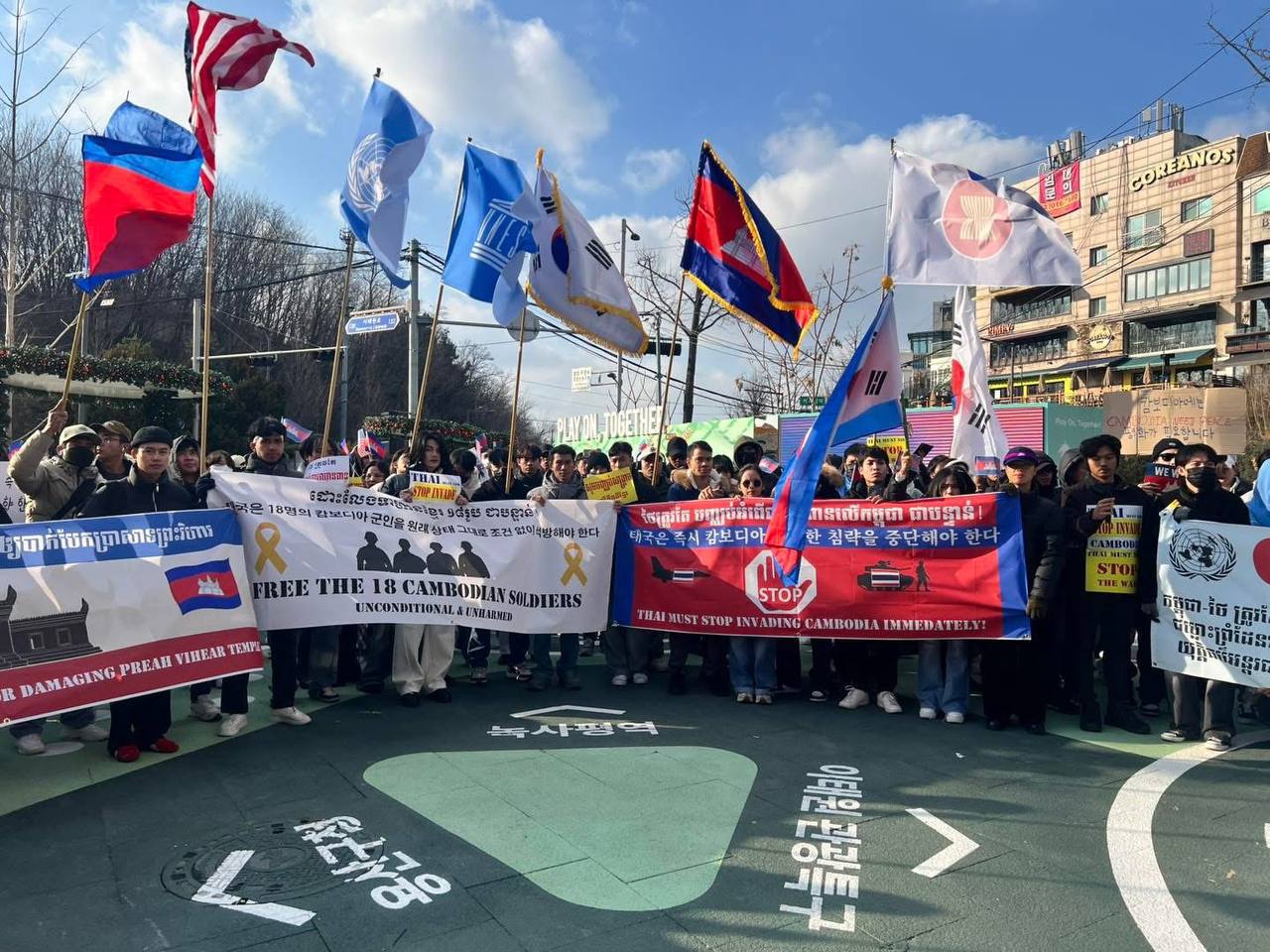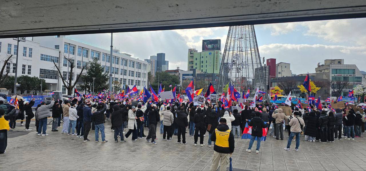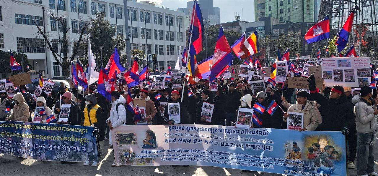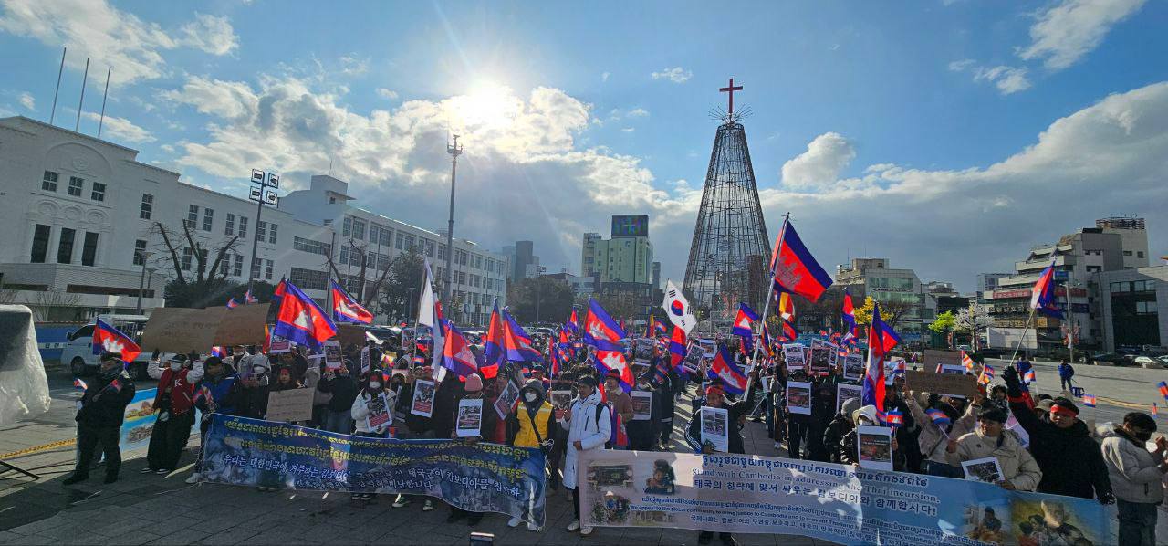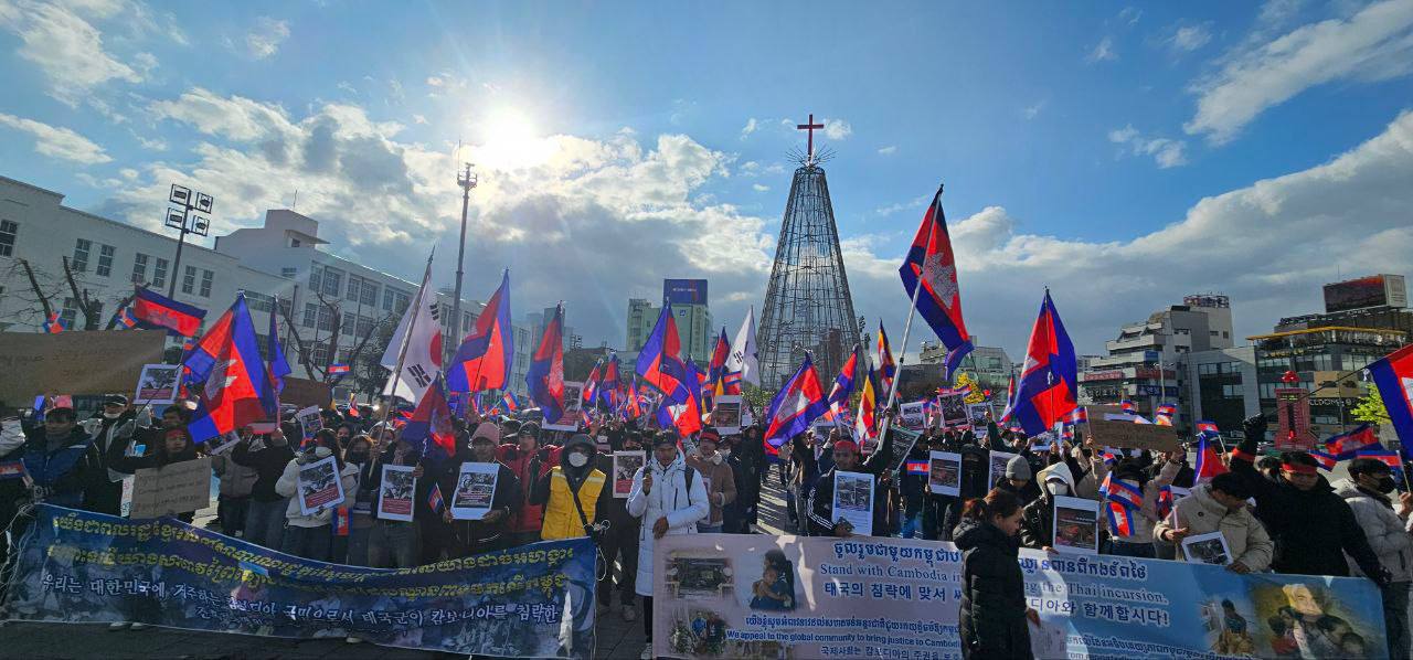 សហគមន៍ខ្មែរនៅកូរ៉េខាងត្បូងជាង ២ពាន់នាក់ប្រមូលផ្តុំគ្នាធ្វើបាតុកម្មសម្តែងមតិថ្កោលទោសការឈ្លានពានយ៉ាងសាហាវព្រៃផ្សៃរបស់កងទ័ពថៃមកលើដែនអធិបតេយ្យកម្ពុជា