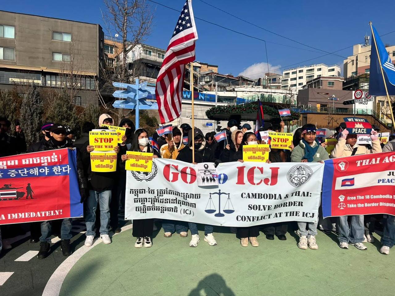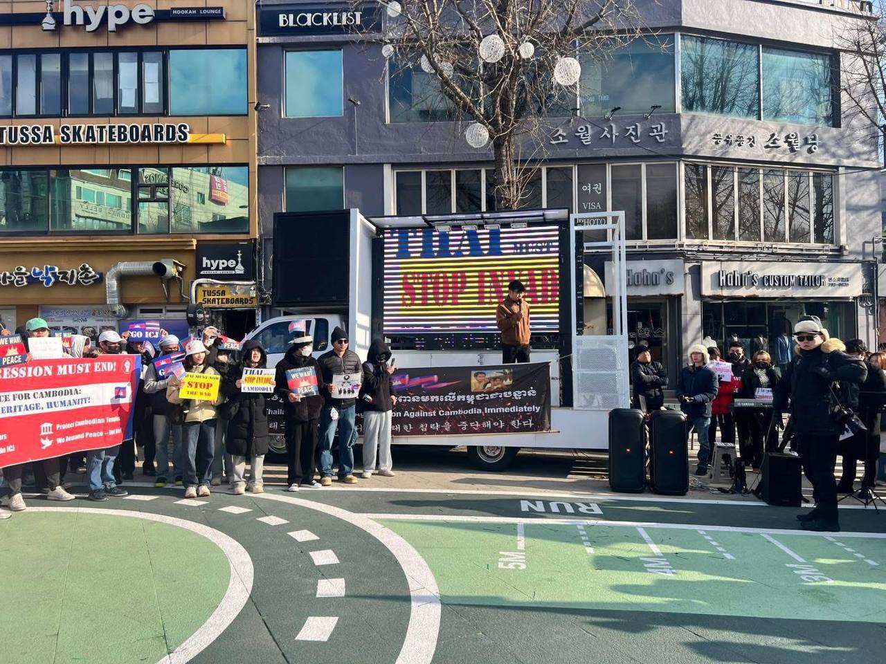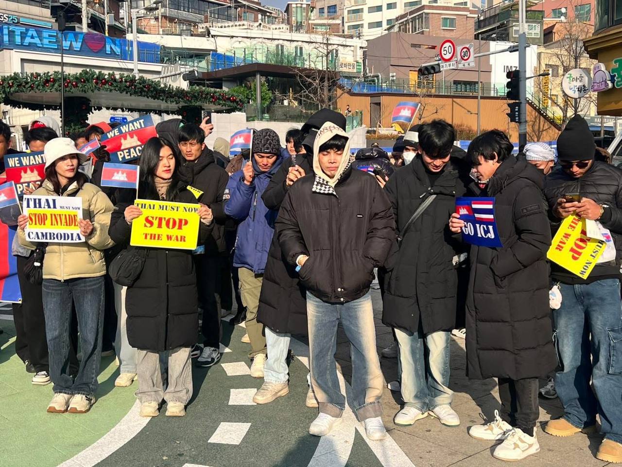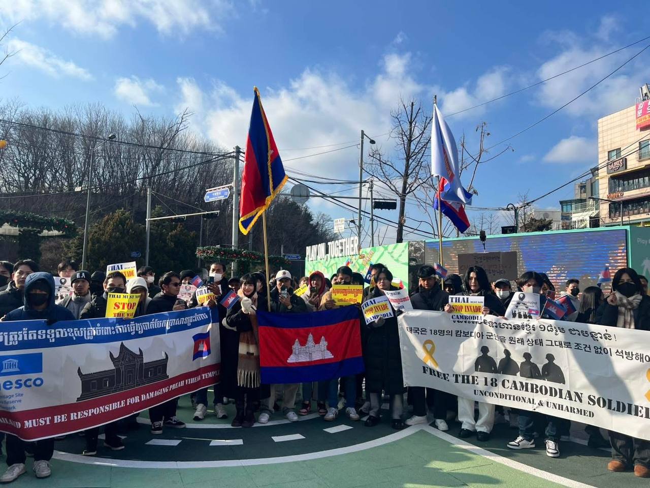 សហគមន៍ខ្មែរនៅកូរ៉េខាងត្បូងជាង ២ពាន់នាក់ប្រមូលផ្តុំគ្នាធ្វើបាតុកម្មសម្តែងមតិថ្កោលទោសការឈ្លានពានយ៉ាងសាហាវព្រៃផ្សៃរបស់កងទ័ពថៃមកលើដែនអធិបតេយ្យកម្ពុជា