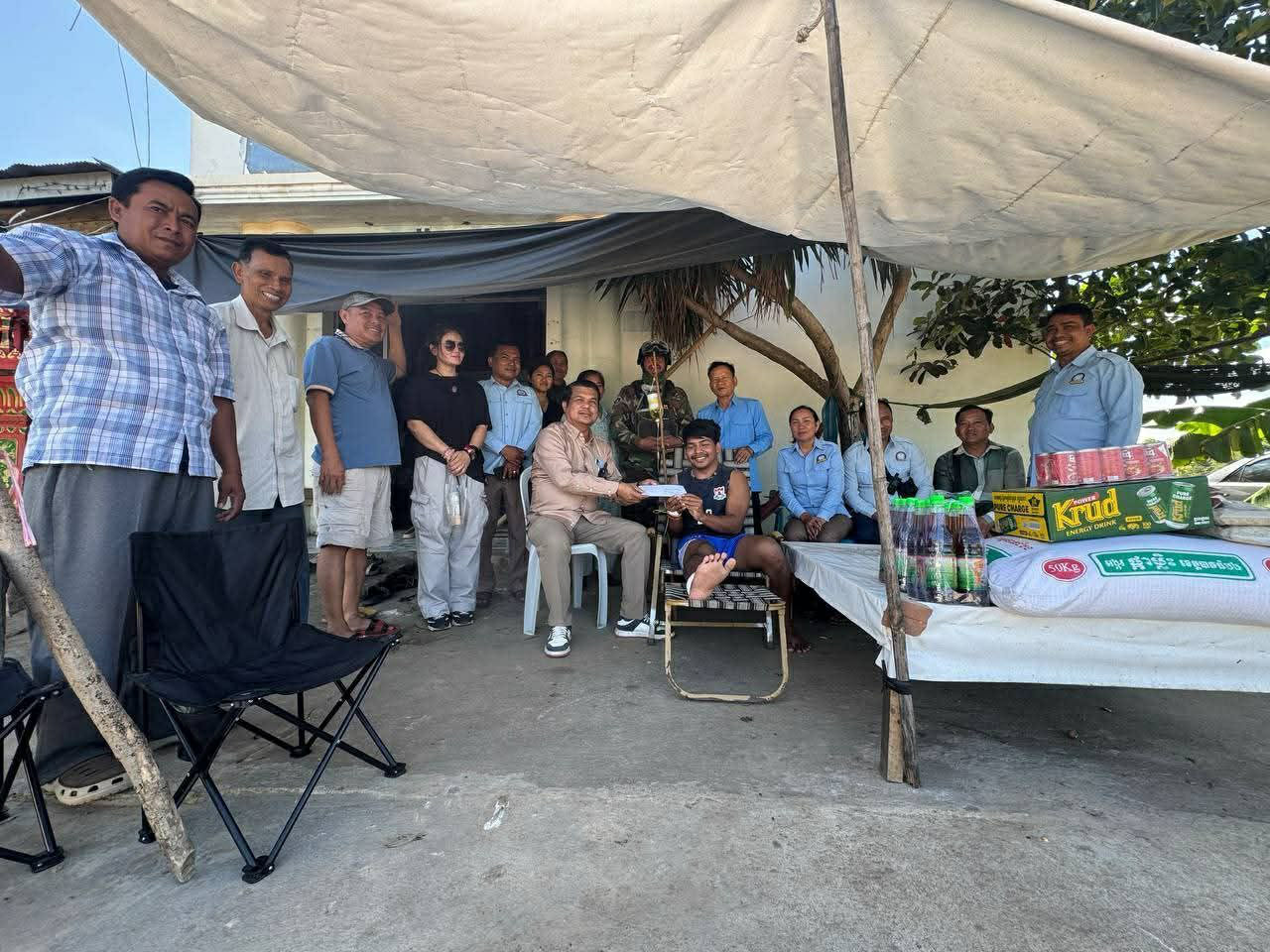 ខេត្តបាត់ដំបង ៖ ក្រុមការងាររដ្ឋបាលស្រុកភ្នំព្រឹក ដែលដឹកនាំដោយអភិបាលស្រុក លោក សុង សុភ័ក្រ នៅព្រឹកថ្ងៃទី១៥ ធ្នូ នេះ បានចុះសួរសុខទុក្ខផ្ដល់ជូនថវិកា និង ស្បៀងអាហារខ្លះៗ ដល់វរជនកងទ័ពម្នាក់ ដែលទើបចេញពីមន្ទីរពេទ្យ ដោយសាររងរបួសនៅសមរភូមិមុខ«អូរស្មាច់» ខេត្តឧត្តមានជ័យ ។