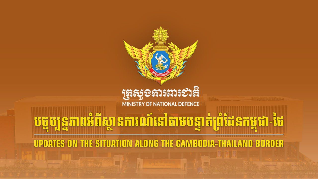 រាជធានីភ្នំពេញ ៖ ក្រសួងការពារជាតិ បានប្រកាសនាព្រឹកថ្ងៃទី១៦ ខែធ្នូ ឆ្នាំ២០២៥នេះថា ៖ សង្ខេបស្ថានការណ៍នៅតាមបន្ទាត់ព្រំដែនកម្ពុជា-ថៃ អំពីករណីកងកម្លាំងយោធាថៃបន្តការបាញ់ប្រហារមកលើកងកម្លាំងកម្ពុជានៅយោធភូមិភាគទី៤ និងយោធភូមិភាគទី៥ ។